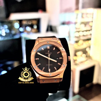 Hublot Classic Fusion Gold Bezel Black Dial and Rubber Straps