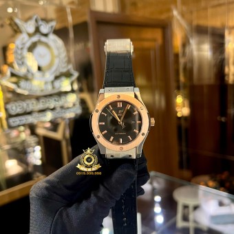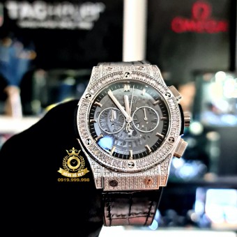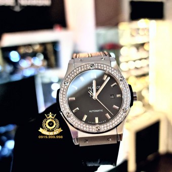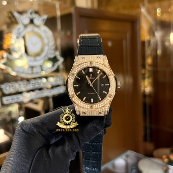 Hublot Classic Fusion Black Rosegold Bezel Full Diamond.