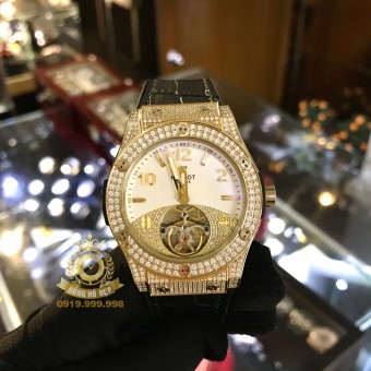 Hublot Big Bang Tourbillon Gold Yellow Diamond White Dial.
