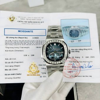 Patek Philippe Nautilus 5712G Blue Dial Moissanite Baguette.