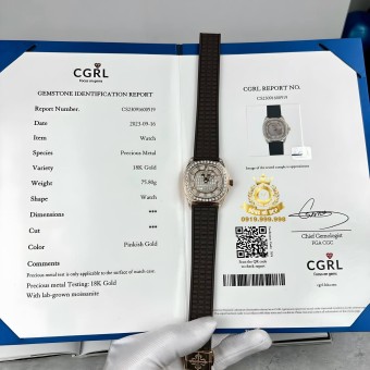 Patek Philippe Aquanaut 5062/450R-001 Brown Rubber Moissanite Diamond Bọc Vàng.