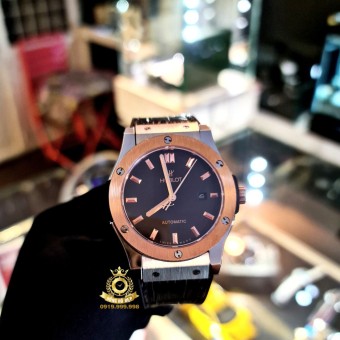 Hublot Classic Fusion Black Bezel Gold Dial and Rubber Straps