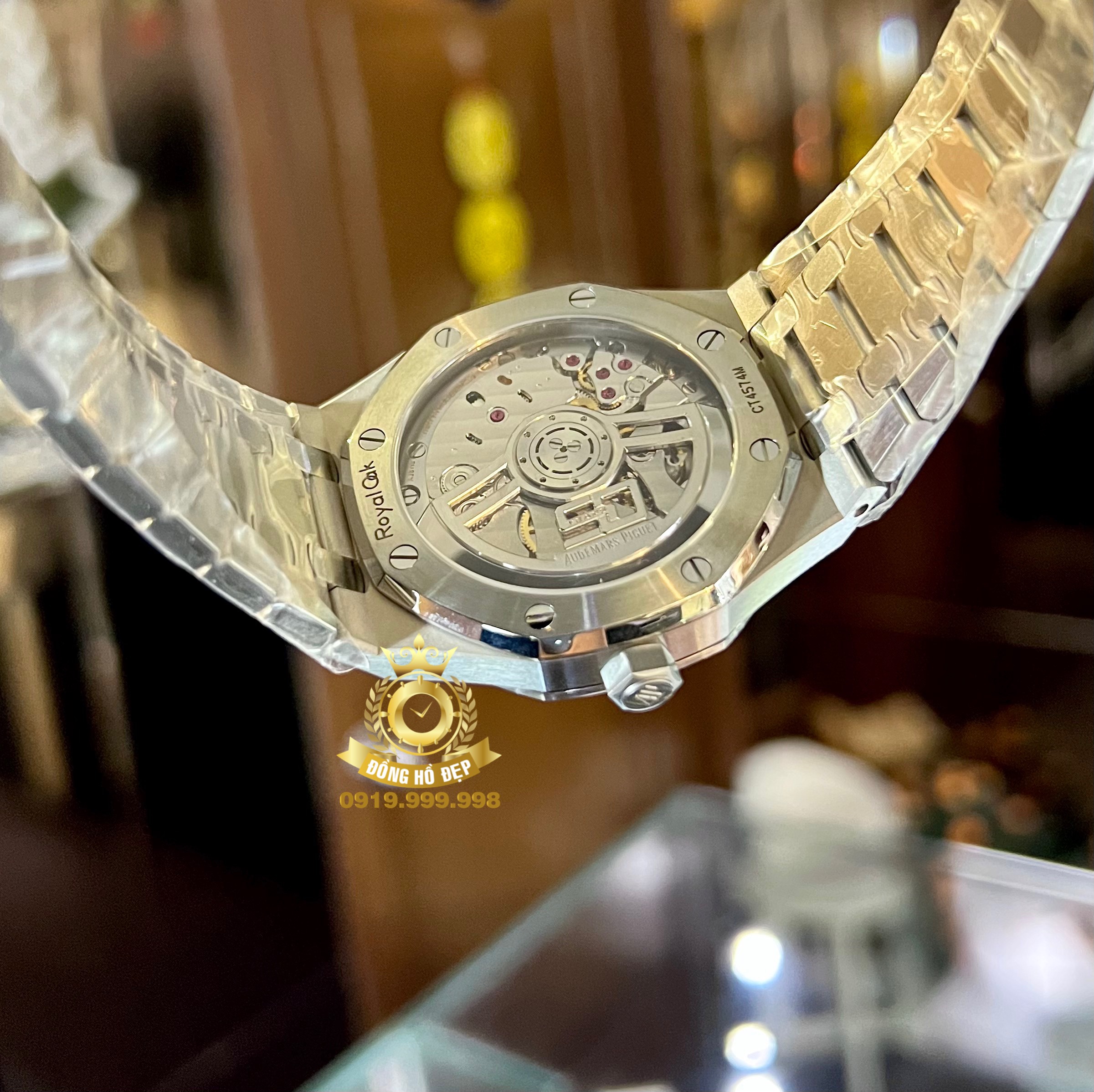 Đồng hồ Audemars Piguet Royal Oak Selfwinding “50th Anniversary” 15510ST.OO.1320ST.04 15510STOO1320ST04 là mẫu đồng hồ đến từ thương hiệu Audemars Piguet, có kích cỡ mặt số 41 mm dành cho các quý ông lịch lãm. Chiếc đồng hồ sử dụng bộ máy tự động có xuất xứ Thụy Sĩ, đồng hồ có thể vận hành trong thời gian dài, có độ bền và giá trị sưu tầm cao. Chất liệu vỏ được chế tác từ thép có độ bền cao và vẻ ngoài sang trọng. Đồng hồ được trang bị dây kim loại bền bỉ, lịch lãm. Chất liệu kính làm từ Sapphire đem lại khả năng chống xước, chống lóa tuyệt vời.