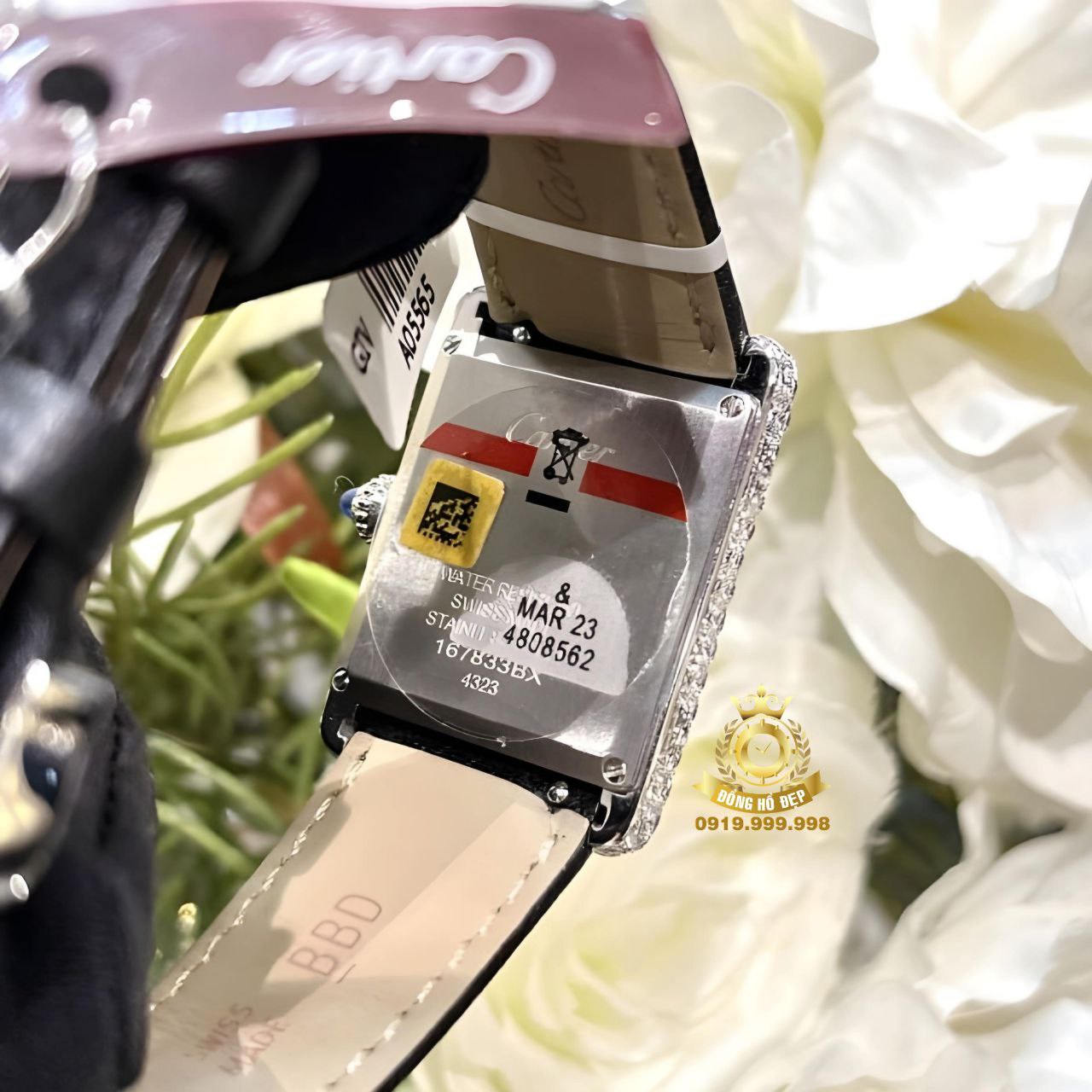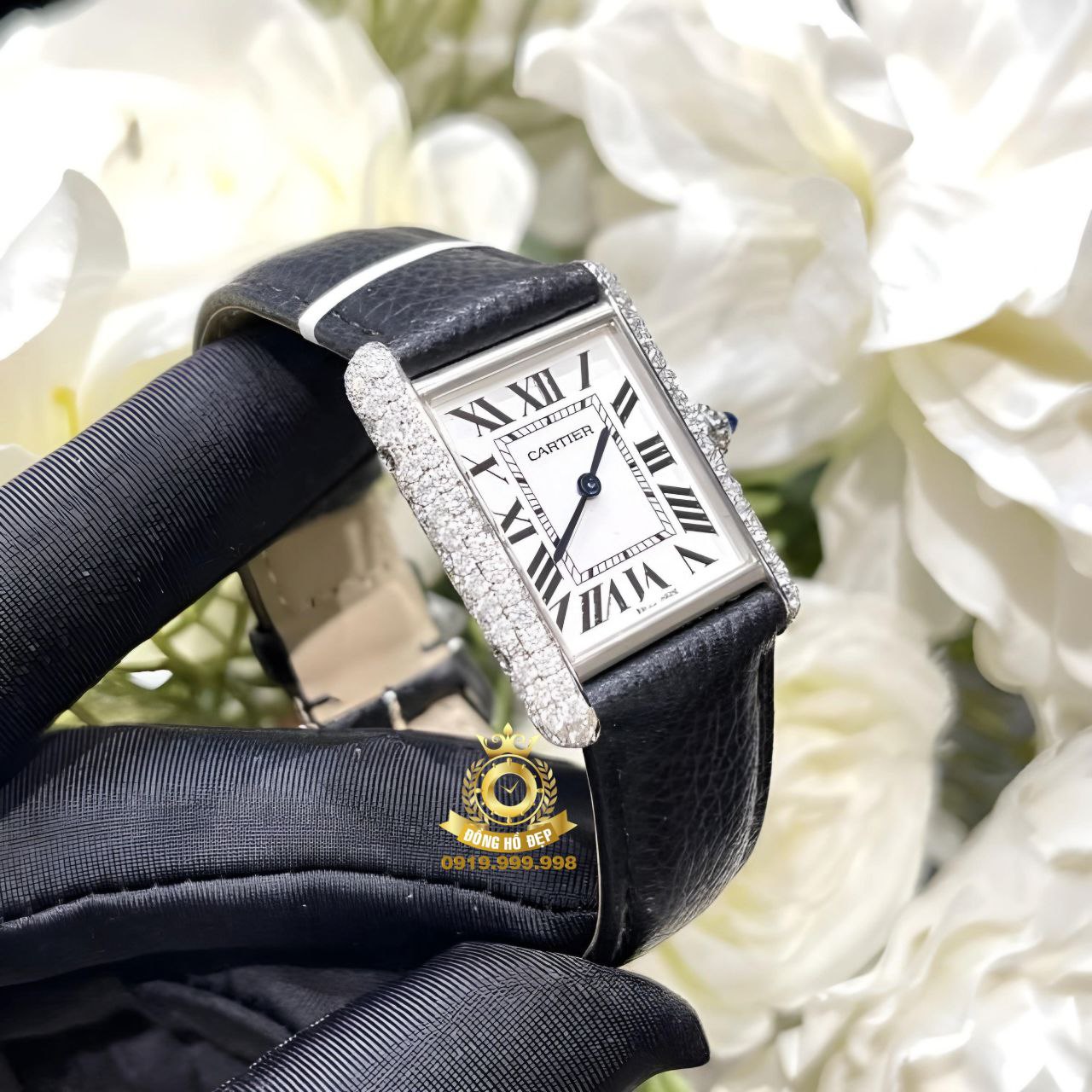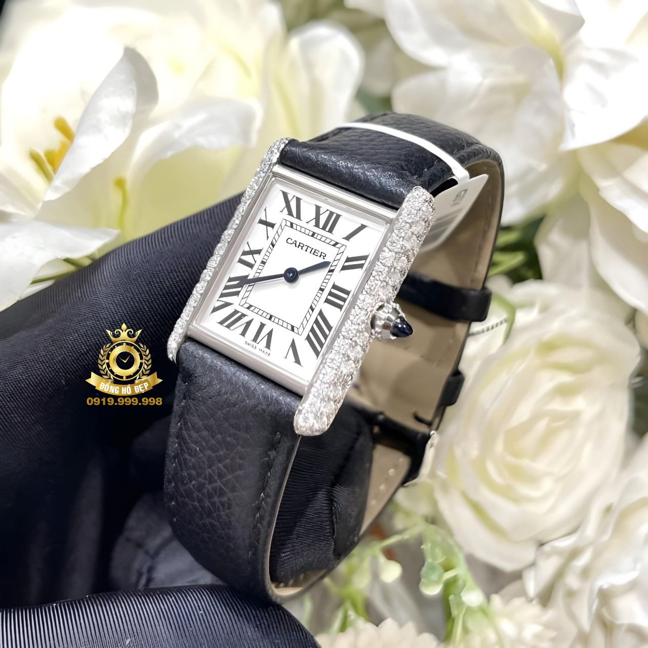 Đánh giá Cartier Tank Must White Line Moissanite Black Leather.
