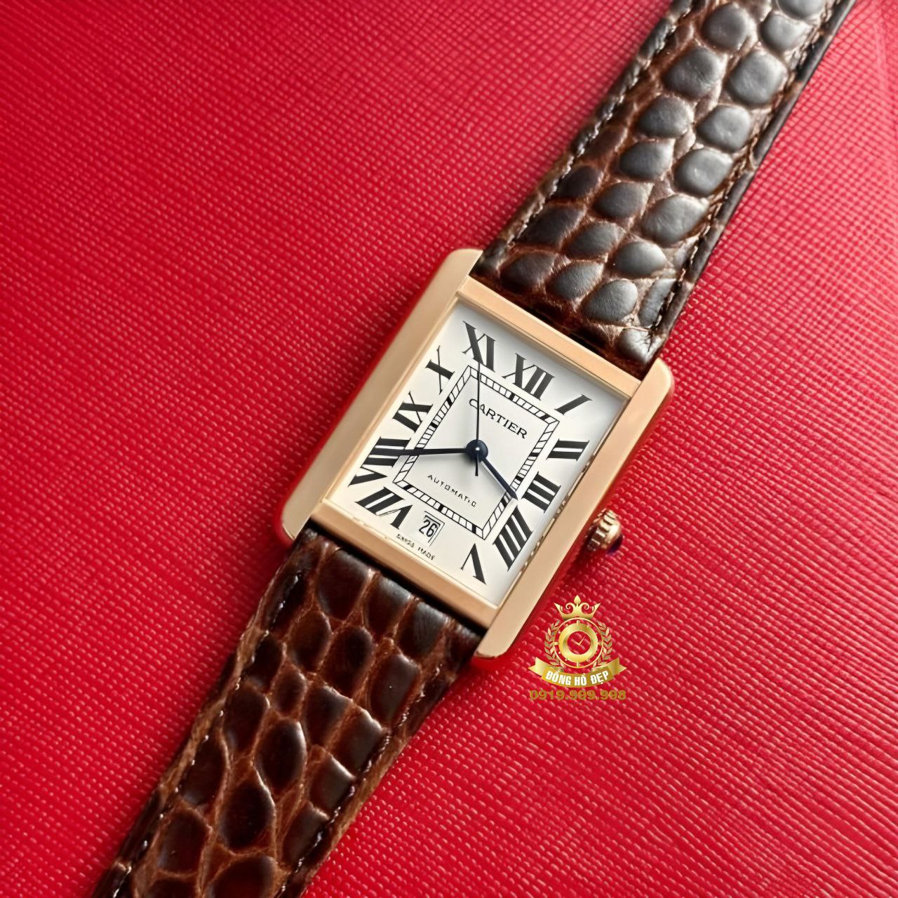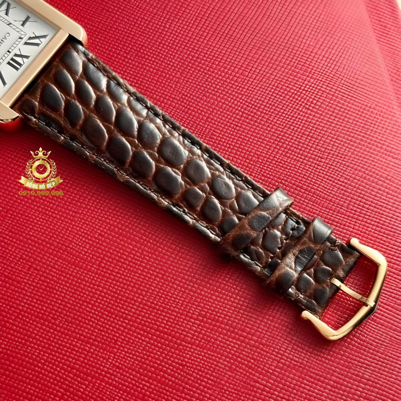 Đánh giá Cartier Tank W5200026 RoseGold Dial Bre Leather.