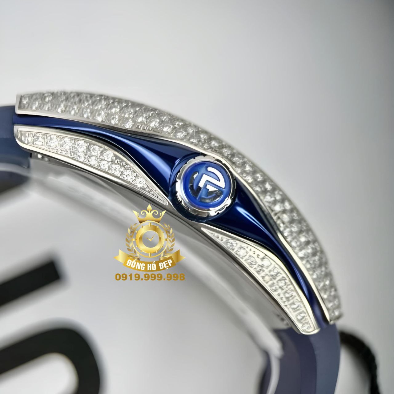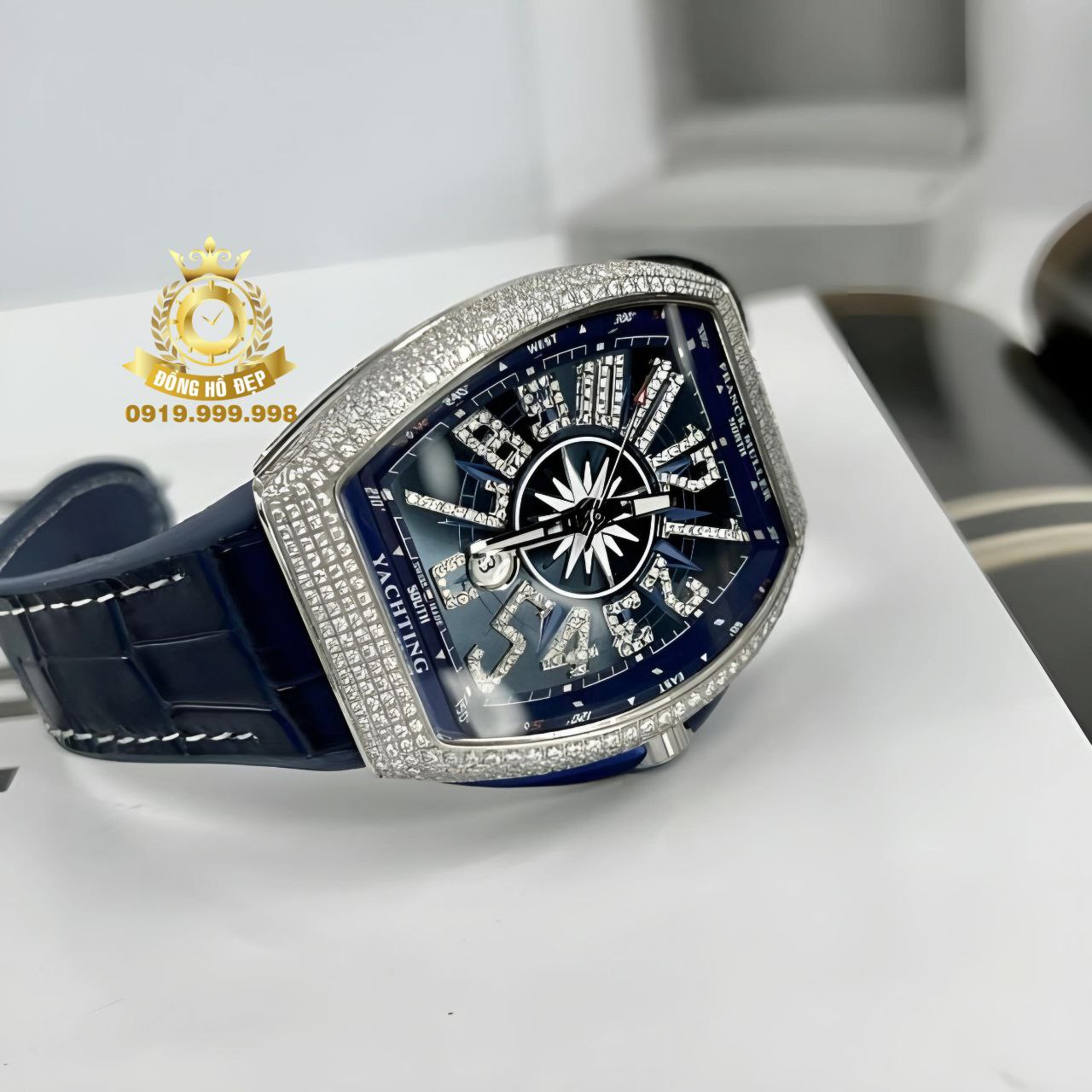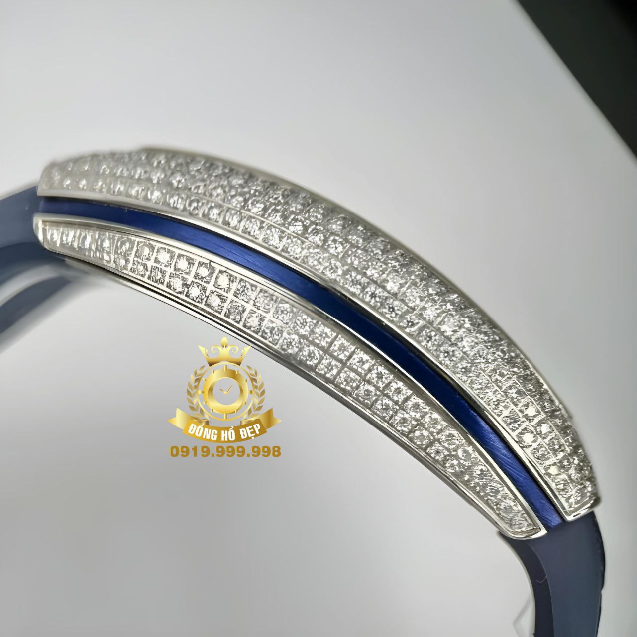 Đánh giá Franck Muller V45 Blue Dial Moissanite Silver Blue Rubber.