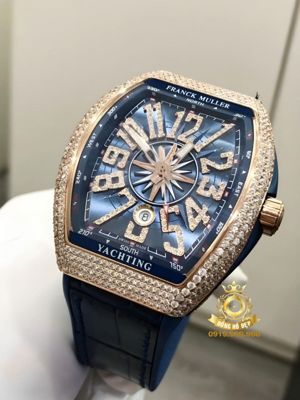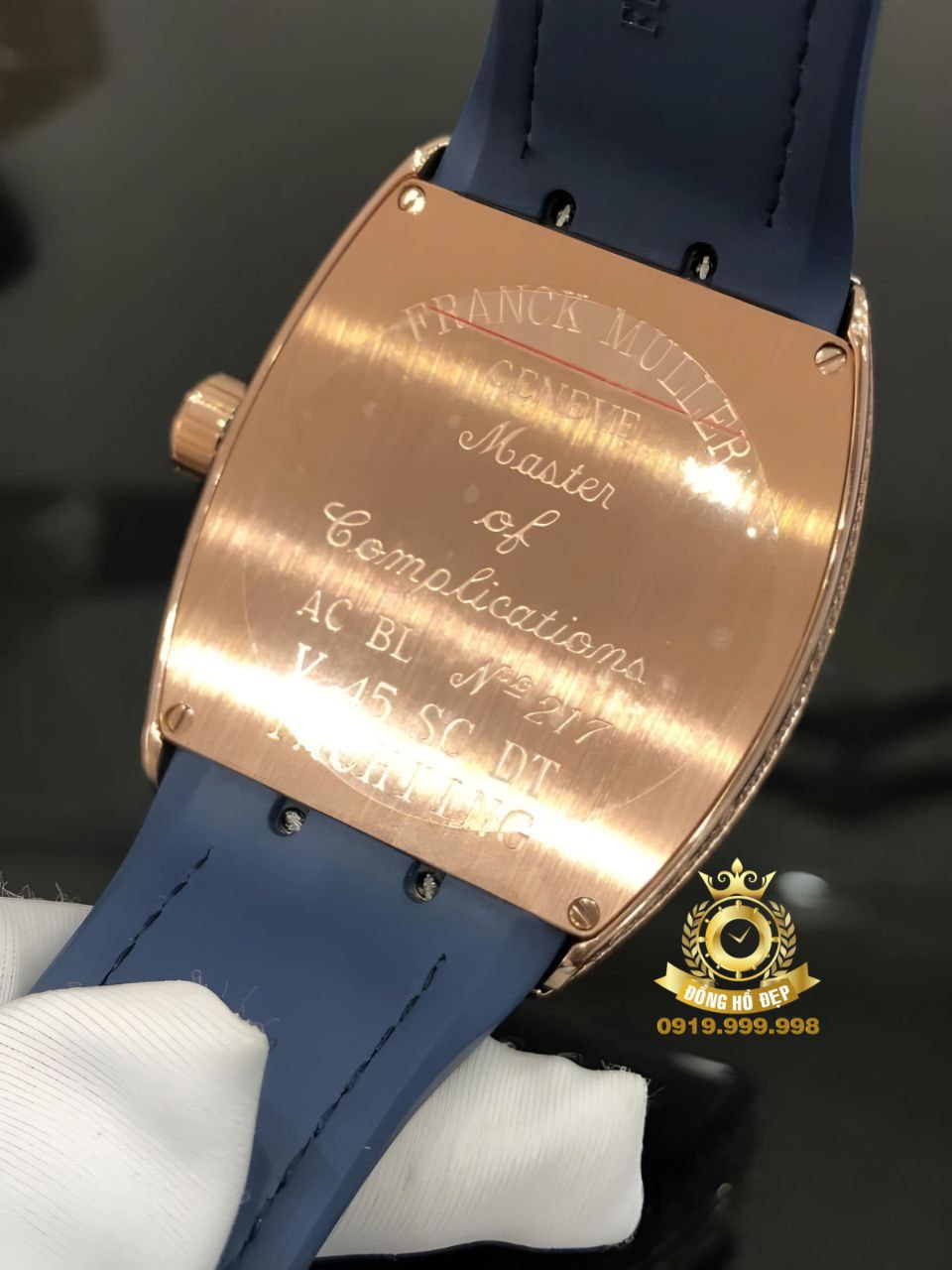 Đánh giá Franck Muller V45 Blue Dial Swarovski Rose Gold Blue Rubber.