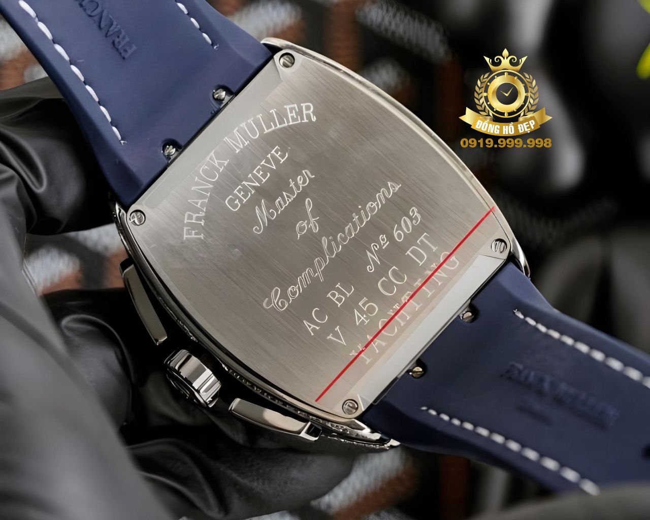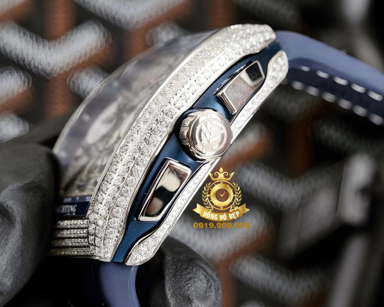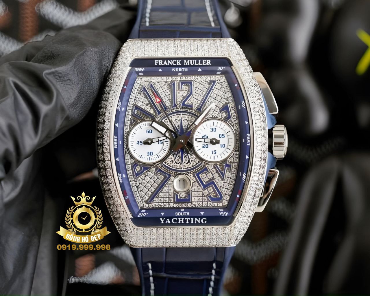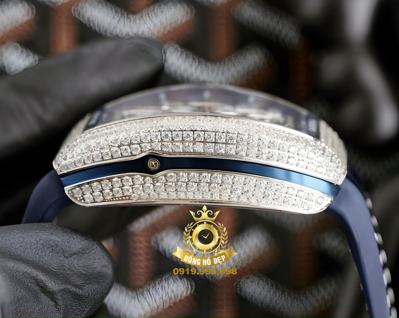 Đánh giá Franck Muller V45 Blue Full Swarovski Silver Blue Rubber.