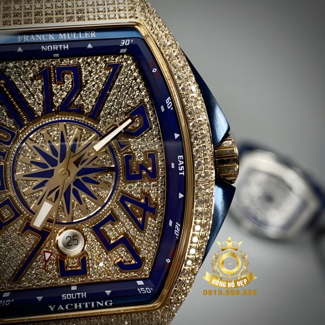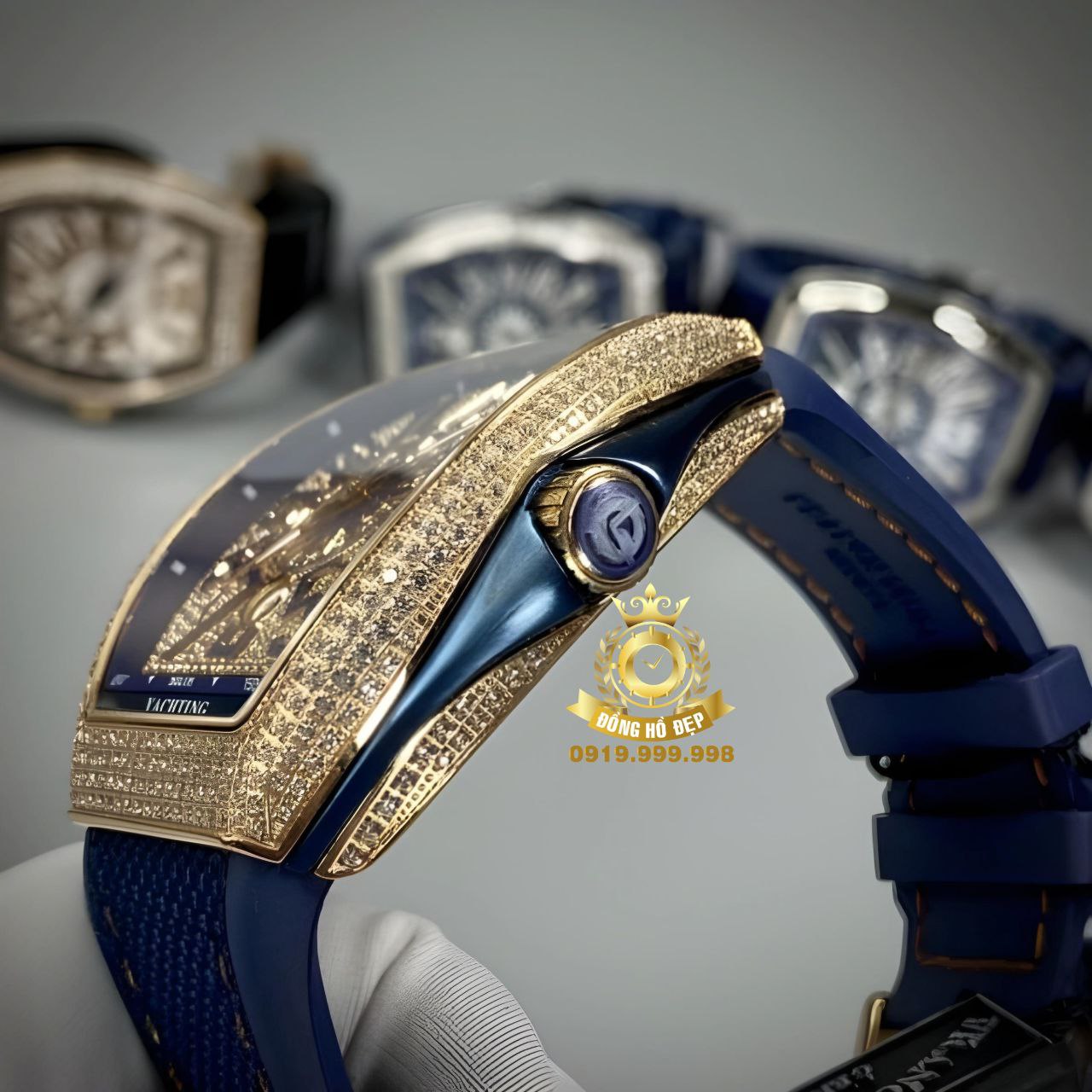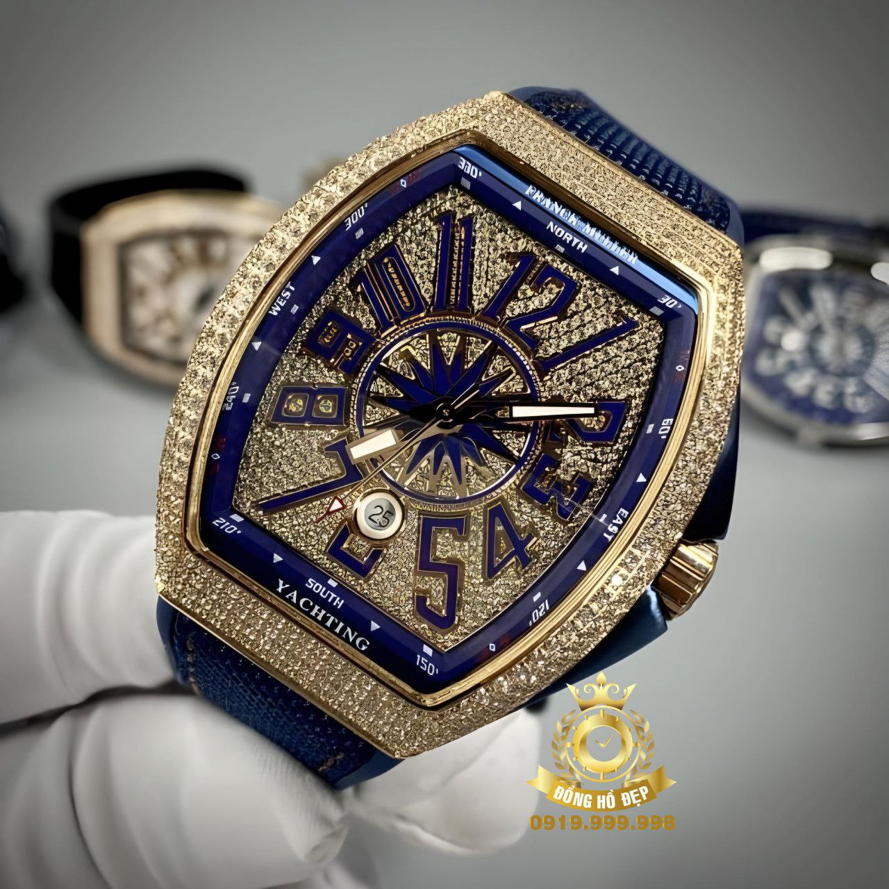 Đánh giá Franck Muller V45 Full Diamond RoseGold Blue Rubber.
