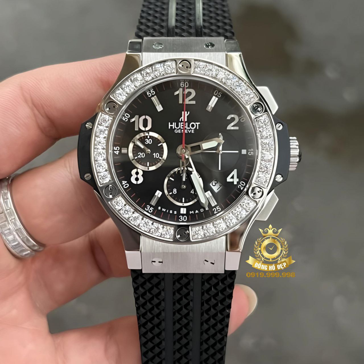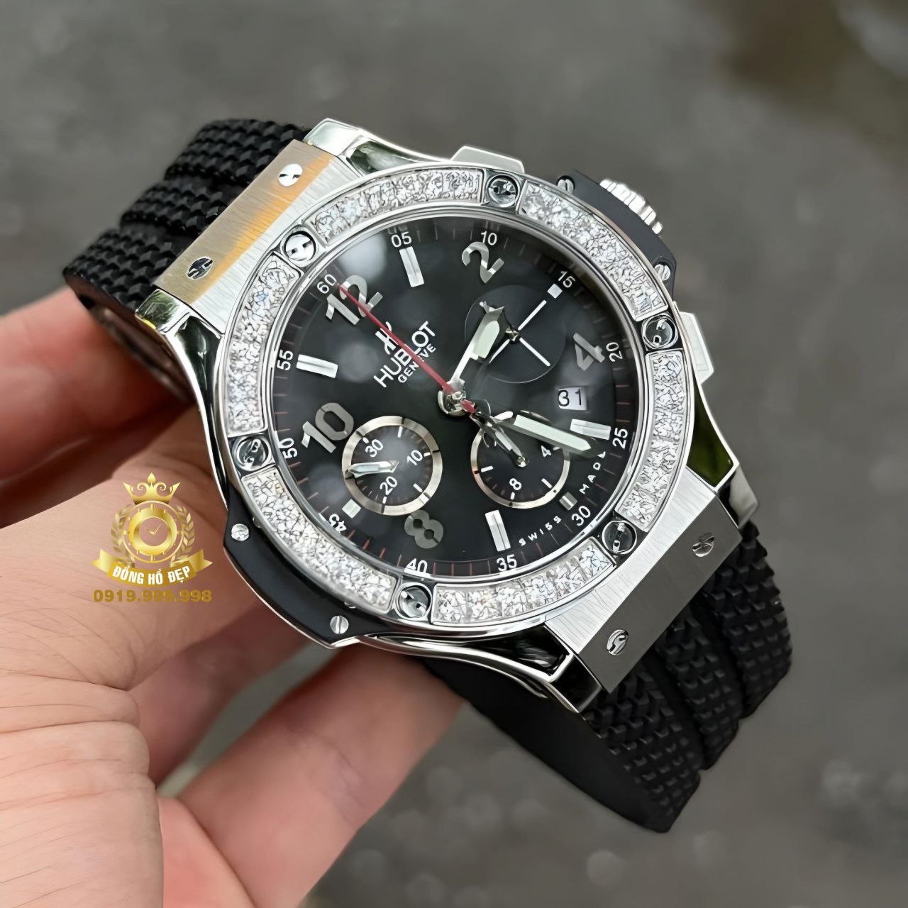 Đánh giá Hublot Big Bang Chronograph Titanium Swarovski Dial Black Rubber.