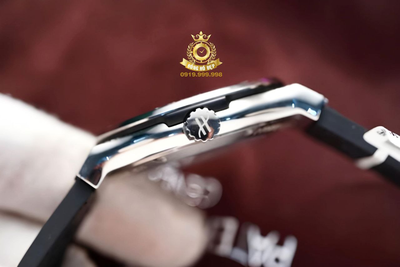 Chính nhờ sự thú vị này mà người ta sẽ càng cảm thấy chiếc đồng hồ có sức hút hơn bao giờ hết, núm chỉnh giờ hay khóa đều được chế tác hiện đại, rất phù hợp với tổng thể thiết kế. Núm được thiết kế vô cùng tỉ mỉ hoàn thiện sát với bản hãng nhất. Được chia khía rãnh đều đặn nhằm tạo ma sát giúp người dùng có thể dễ dàng xoay chỉnh núm. Núm được thiết kế gọn gàng tỉ mỉ được gắn chặt trên thân vỏ. Bảo vệ cho phần núm này là một lớp nhựa cao cấp được nhô lên ở bên hông nhằm tăng khả năng chống nước đồng thời tránh tình trạng va đập ngoài ý muốn. Logo thương hiệu cũng được hoàn thiện sắc nét dập chìm bên trên.