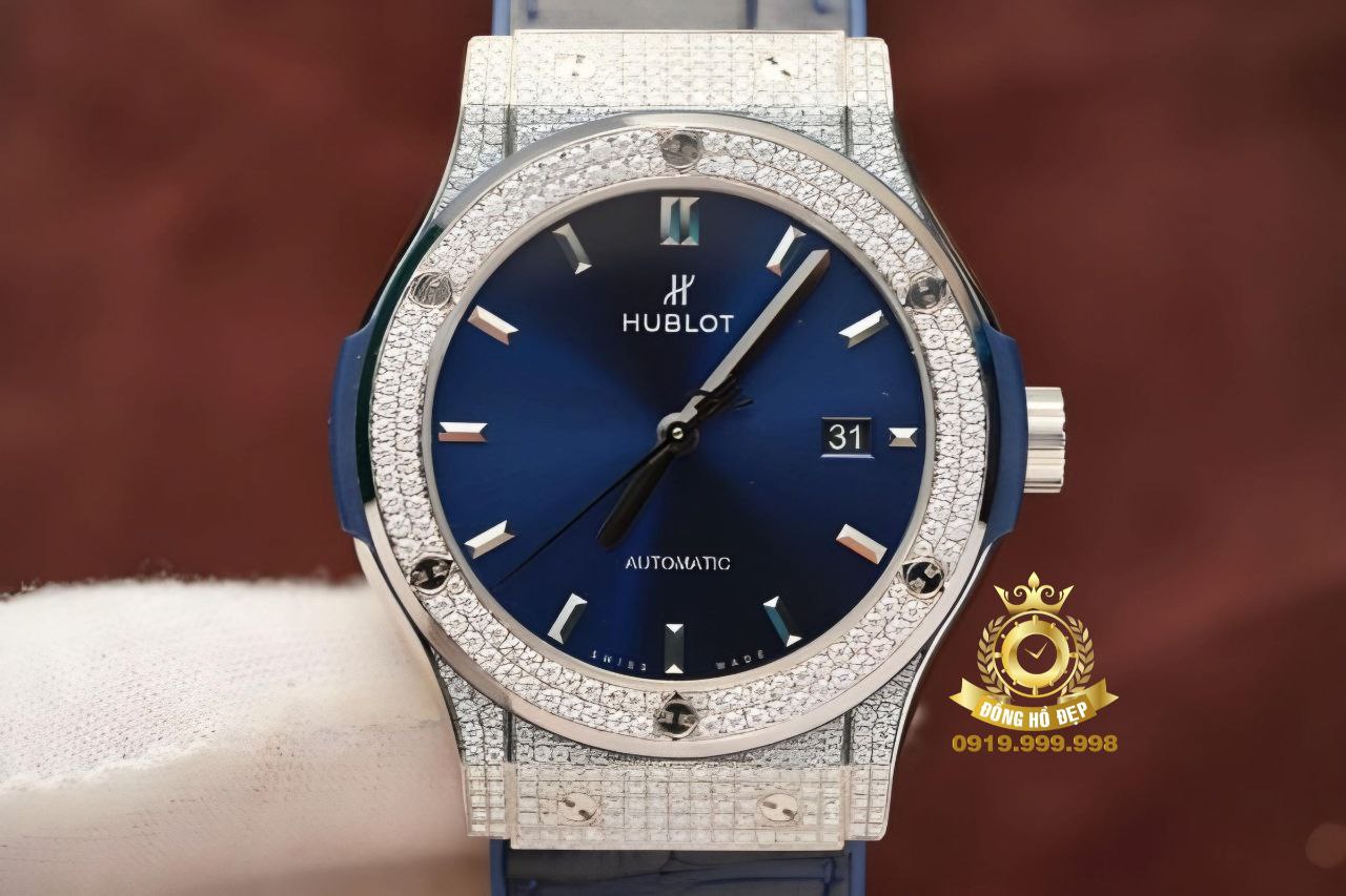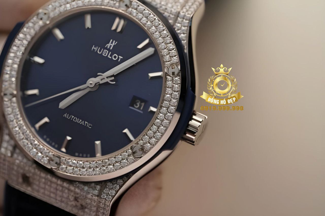 Lộng lẫy và đầy bí ẩn, chiếc Đồng Hồ Hublot Đính Kim Cương Moissanite Classic Fusion đã khiến nhiều tín đồ đồng hồ thổn thức. Được làm từ chất liệu thép và titanium với độ bền cứng và trọng lượng nhẹ, chiếc đồng hồ này còn sở hữu lượng lớn kim cương nhân tạo phủ kín bộ vỏ khung tạo cảm giác sang trọng và đem đến giá trị thẩm mỹ cao.