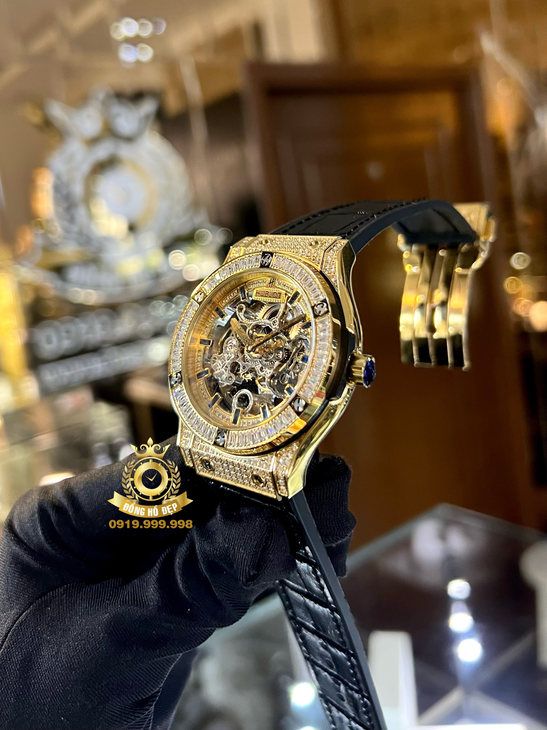 Đánh giá Hublot Skeleton Gold Yellow Diamond Belzel.