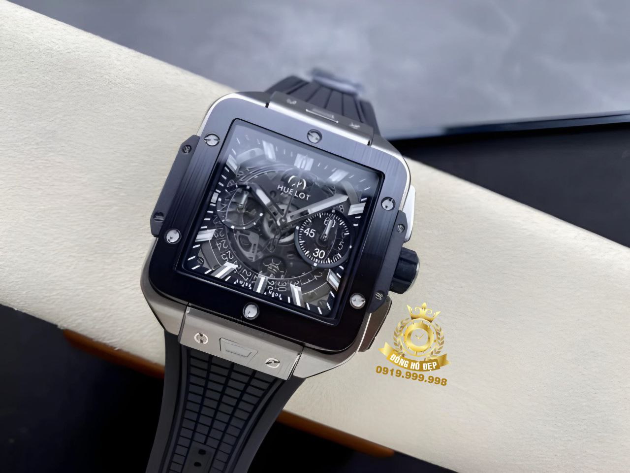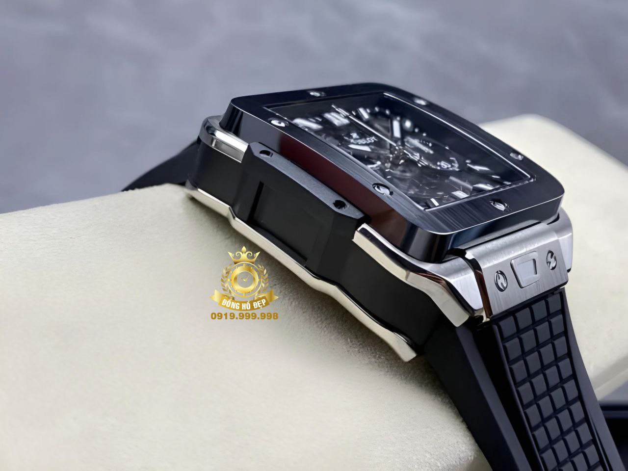 Phiên bản đồng hồ Hublot Square Bang nổi bật với thiết kế kích thước nhỏ hơn một chút so với các mẫu năm 2022. Khả năng chống nước đã giảm từ 100m xuống 50m, tạo ra một lựa chọn đa dạng cho người dùng. Với kích thước vỏ 41mm và độ dày 12mm, chiếc đồng hồ này tạo nên vẻ ngoại hình thanh lịch và cuốn hút. Vỏ đồng hồ được làm từ Titanium và Ceramic với các đường viền được đánh bóng tinh tế, tạo nên sự hấp dẫn và sang trọng.