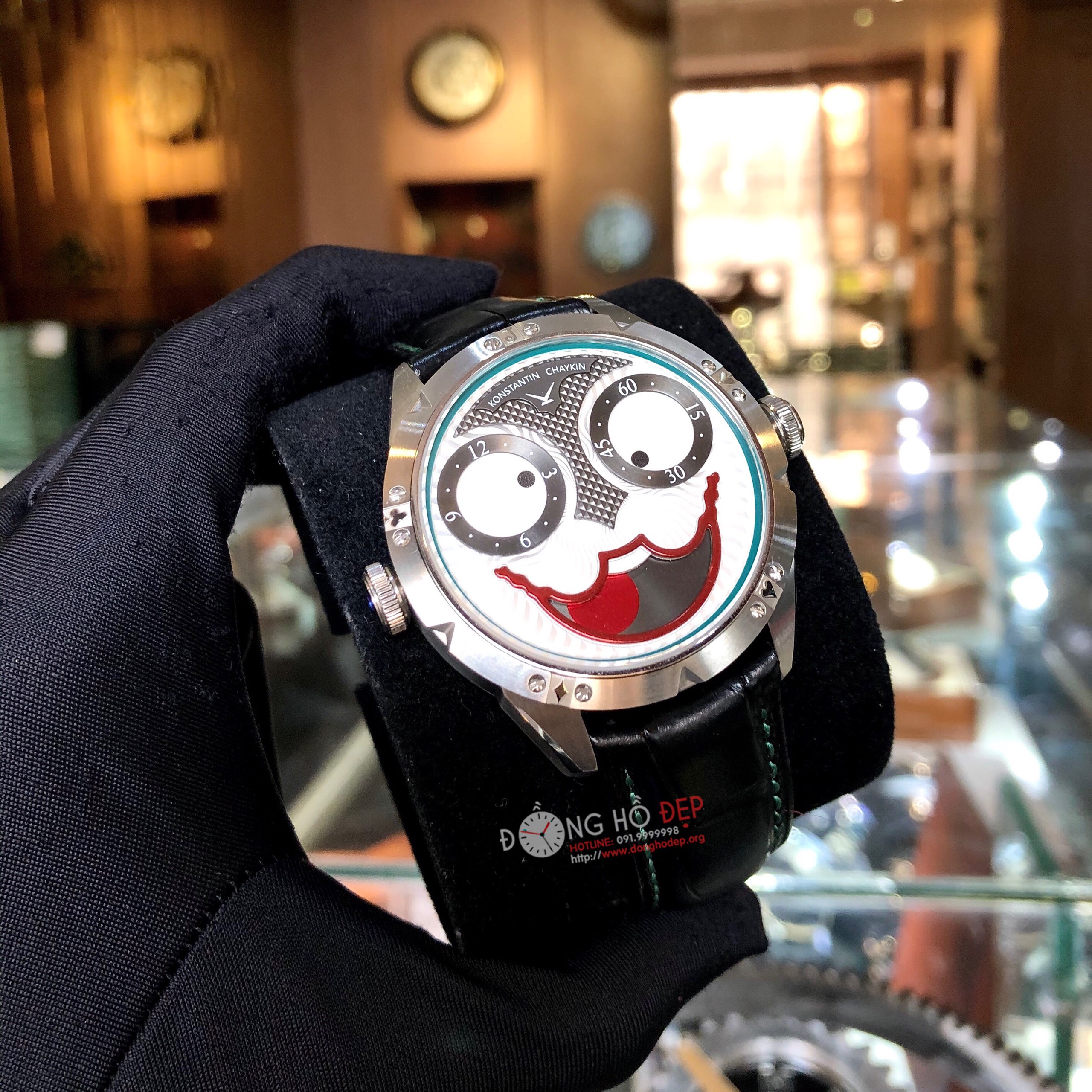 Đồng hồ Konstantin Chaykin’s Joker – một trong những chiếc đồng hồ mang nhiều cảm xúc nhất trên thế giới. Với 20.000 biểu cảm trên khuôn mặt, trò hề của khuôn mặt Joker đã khiến chiếc đồng hồ trở nên nổi tiếng ngay từ ngày đầu tiên trình làng tại Basel World 2017. Konstantin Chaykin Joker là một nhân vật có tính cách và tương đối thân thiện với nhân vật phản diện Batman nổi tiếng cùng tên. Mục đích của chiếc đồng hồ không chỉ để nhắc nhở những người sưu tập đồng hồ về nhân vật Joker mà còn sử dụng chủ đề của anh ấy để giới thiệu một chiếc đồng hồ có “khuôn mặt” có khoảng 20.000 “nét mặt” riêng biệt.