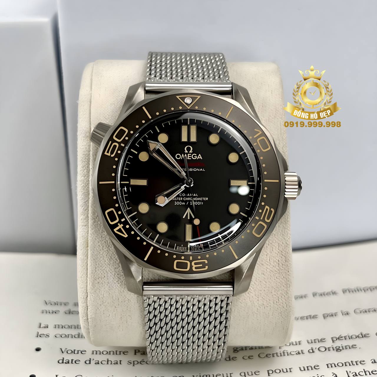 Sẽ ra mắt vào tháng 3 năm nay cùng thời điểm với bộ phim 007 mới nhất ” No time to Die” được khởi chiếu, Omega giới thiệu thêm một phiên bản 007 đặc biệt nữa. Khác biệt so với những thiết kế trước đó là kiểu dáng vintage mạnh mẽ nhưng lại được trang bị những công nghệ đời mới nhất. Đầu tiên là lớp vỏ Titanium Grade 2 siêu nhẹ siêu bền được nung ở nhiệt độ cao để tạo ra mầu nâu đồng đặc sắc. Tiếp theo là công nghệ kính saphire mới mỏng hơn, nhô cao hơn sẽ làm thiết kế này mỏng hơn những mẫu Diver 300 cùng bộ sưu tập. Bộ chuyển động là Cailber 8806 đời mới vốn đã là di sản kế thừa chuẩn mực về độ chính xác, độ bền, khả năng kháng từ cũng như chống Shock tuyệt vời.