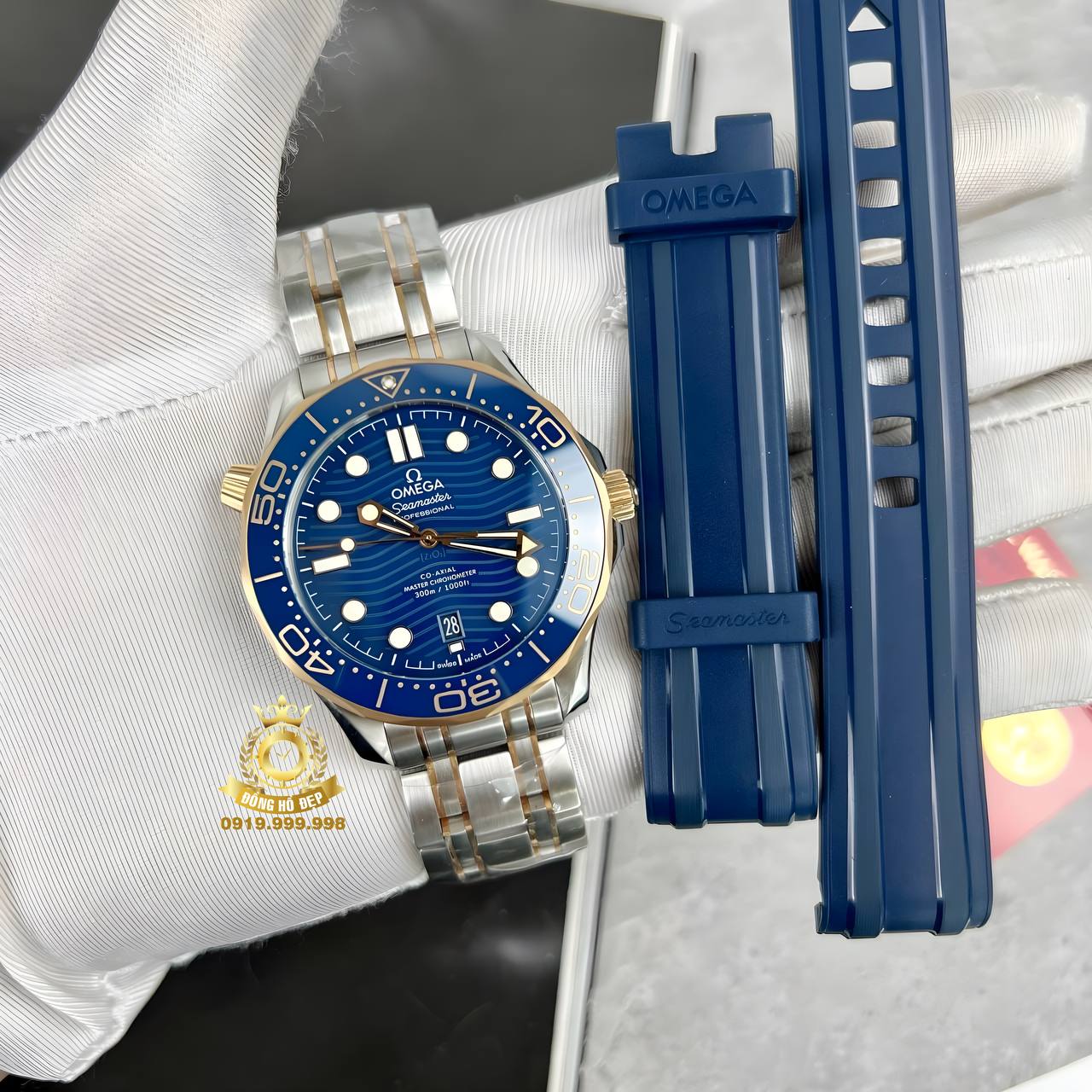 Đánh giá Omega Seamaster Diver 300m Co-Axial Master Chronometer Blue Dial Gold-Yellow Demi.