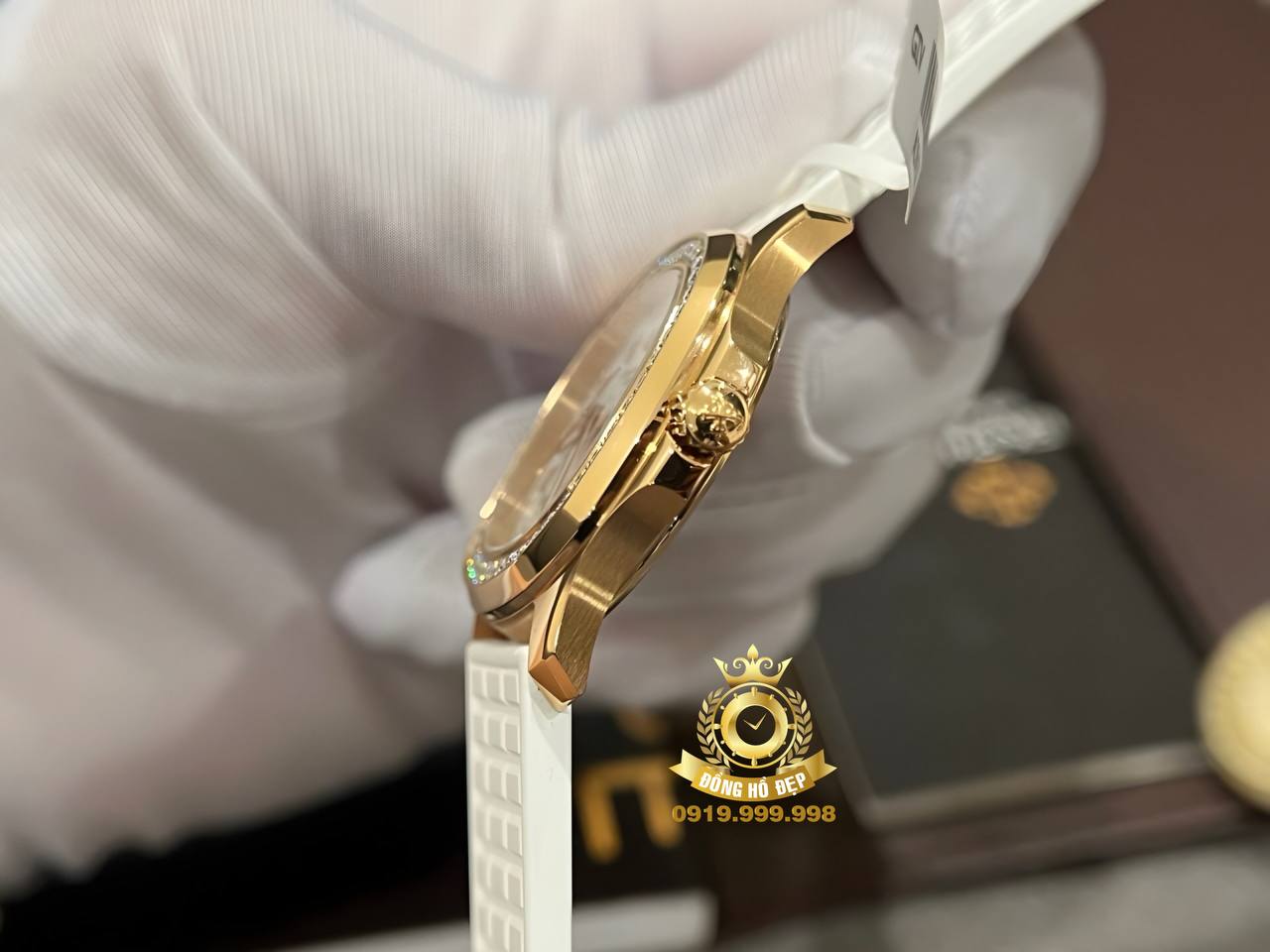 Mẫu đồng hồ Patek Philippe Aquanaut 5067R độ kim cương Moissanite phiên bản Replica 1:1 là một thiết kế đặc biệt đến từ một trong “Tam Thánh” của làng đồng hồ. Với sự kết hợp hoàn hảo giữa nét cá tính và nữ tính, chiếc đồng hồ này đáp ứng nhu cầu của những quý cô muốn tỏa sáng với phong cách khỏe mạnh và duyên dáng.