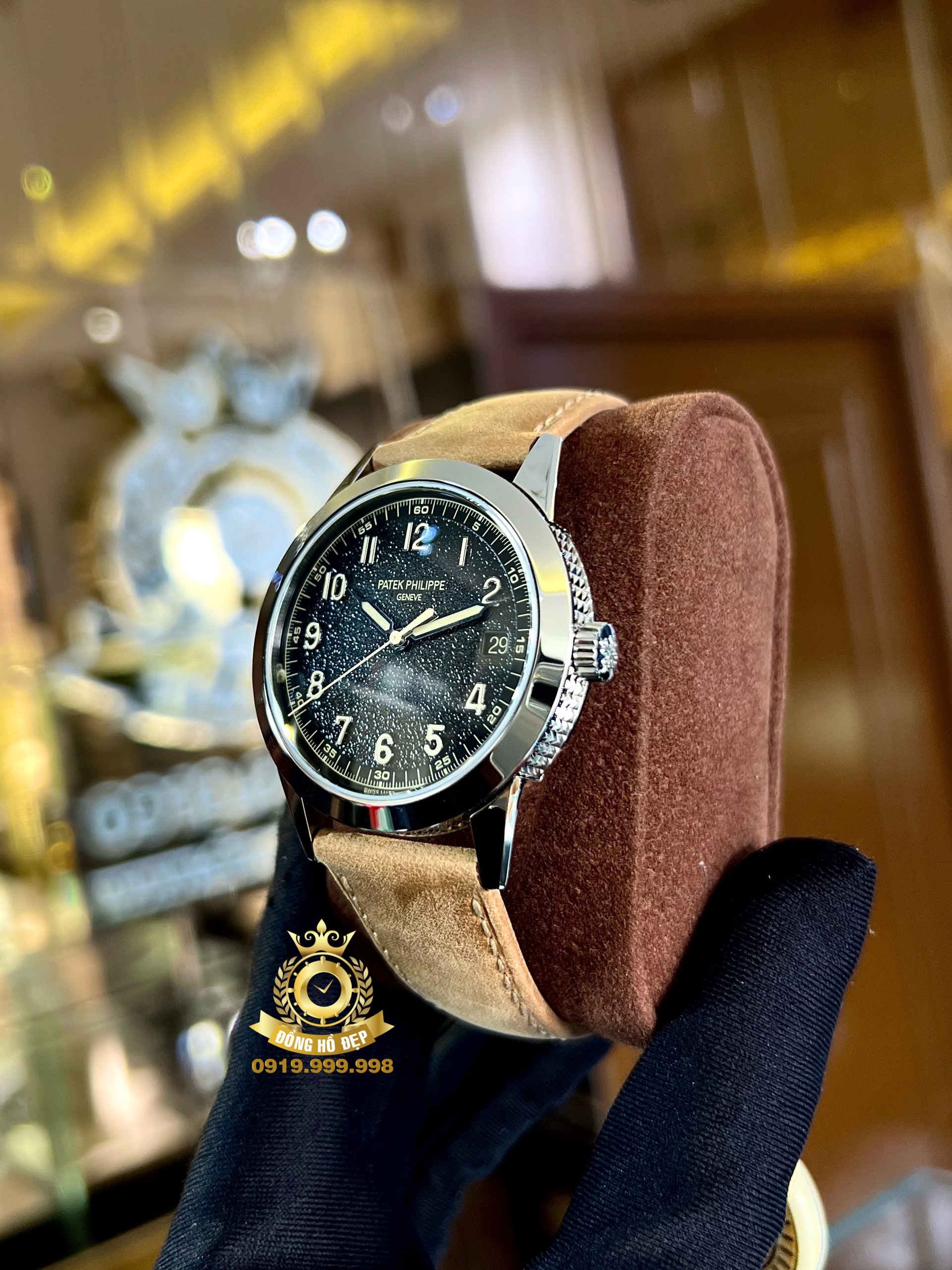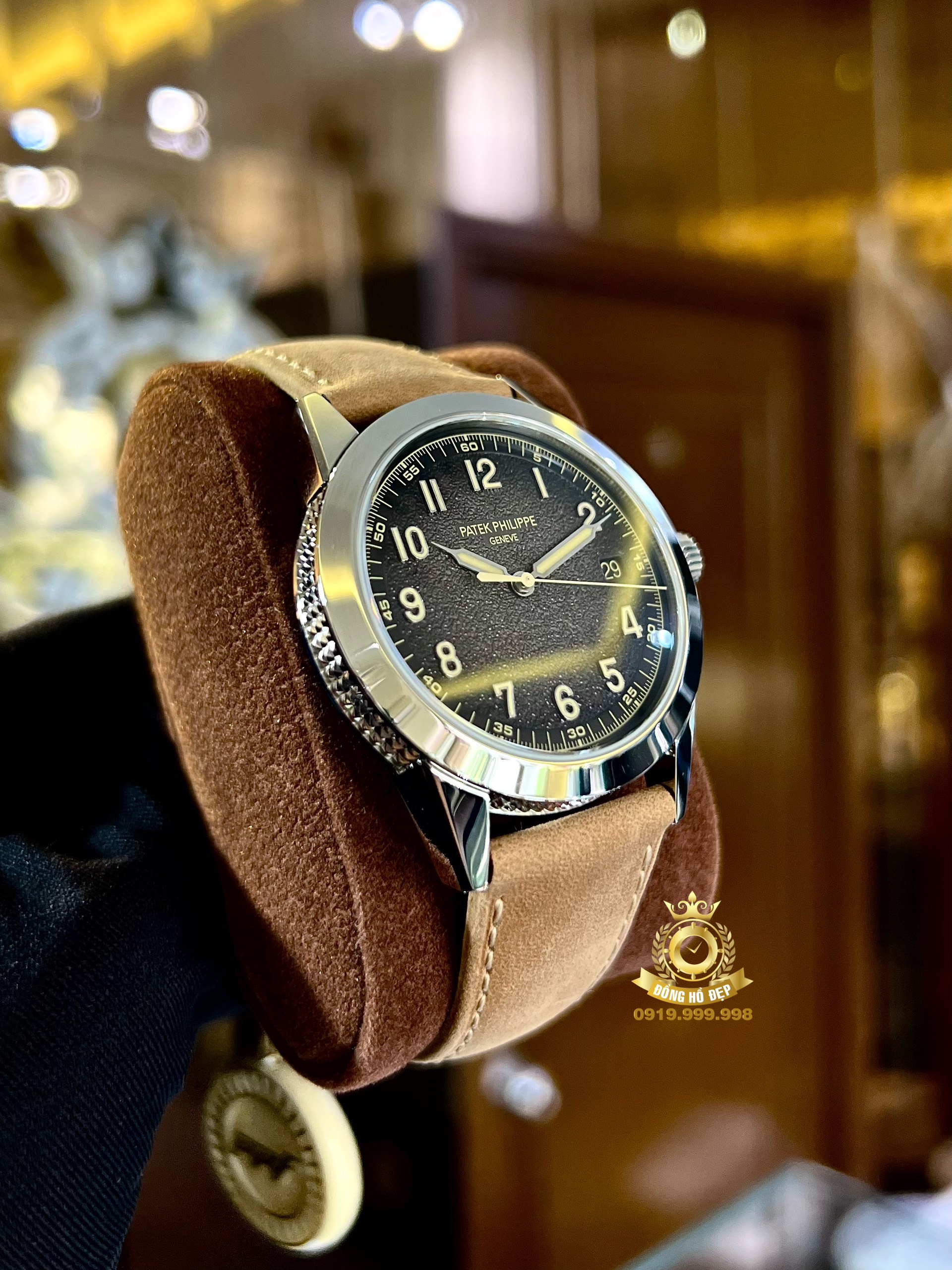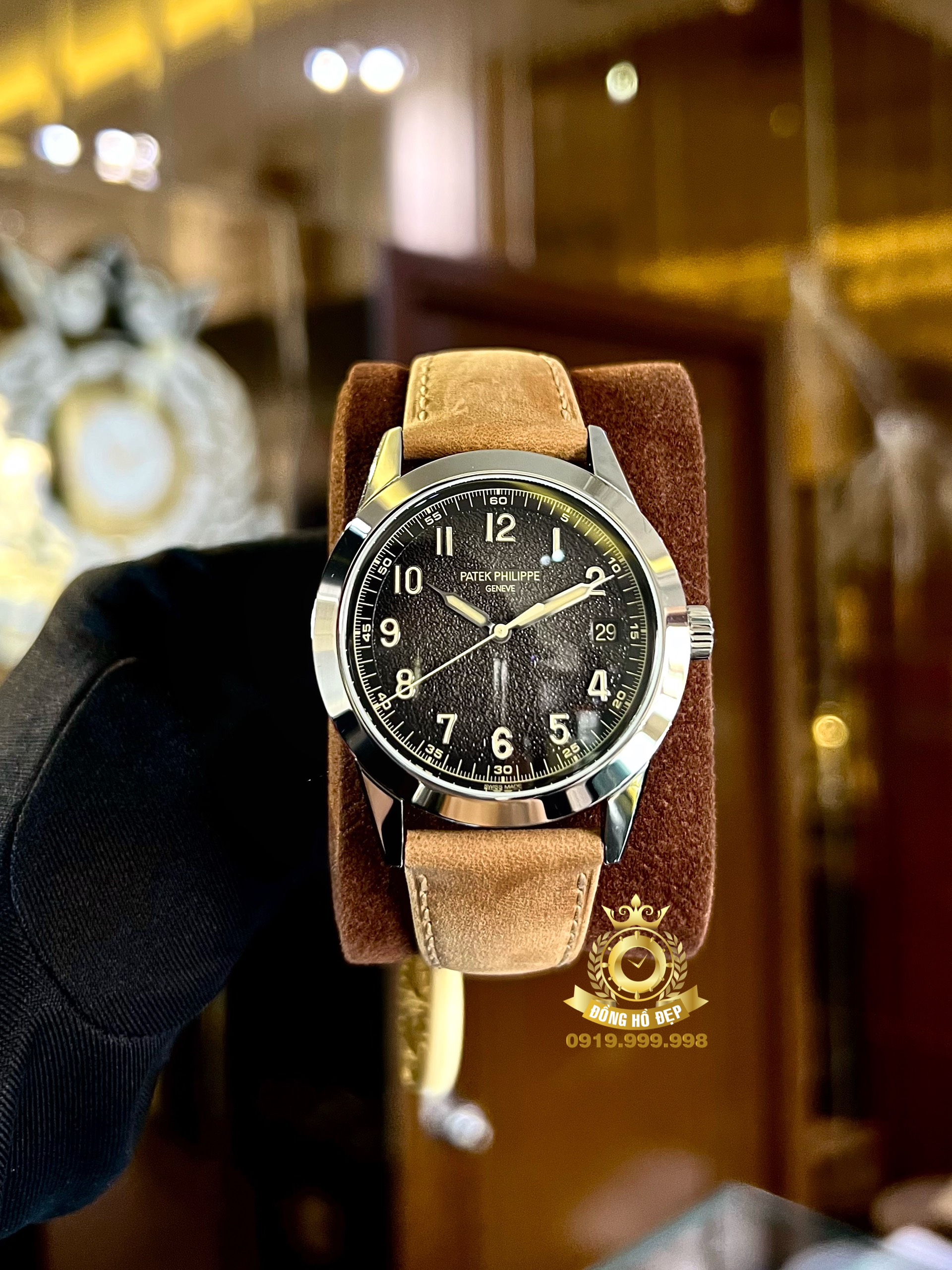 Là sản phẩm bổ sung mới nhất cho bộ sưu tập Calatrava, mẫu Reference 5226 bằng vàng trắng mới này là một minh họa hoàn hảo cho hành trình tìm kiếm sự xuất sắc của Patek Philippe trong tất cả các lĩnh vực nghệ thuật chế tác đồng hồ. Nhìn chằm chằm vào hình dạng của vỏ tròn, thuần túy mà các mẫu Calatrava đã nổi tiếng từ năm 1932, Patek Philippe đã xem xét lại điều này bằng cách trang trí hai bên sườn bằng họa tiết hoa văn Clous de Paris đặc trưng của Xưởng sản xuất. Vì vậy, để cho phép họa tiết vân guilloched này tiếp tục xung quanh toàn bộ hộp đựng, các nhà thiết kế cũng đã nghĩ ra một cấu trúc vỏ đặc biệt, trong đó các vấu là một phần không thể thiếu của vỏ sau. Mẫu đồng hồ mới này được vận hành bằng bộ máy Calibre 26-330 S C lên dây cót tự động, cung cấp năng lượng cho giờ, phút, giây trung tâm, ngày loại khẩu độ và cơ chế giây bấm giờ. Tham chiếu mới này được kết hợp với hai dây đeo có thể hoán đổi cho nhau: một dây đeo bằng da bê màu be với lớp hoàn thiện bằng nubuck và dây còn lại bằng da bê màu đen với họa tiết vải nổi và lớp viền màu be. ĐỒNG HỒ Chuyển động cơ học tự lên dây cót. Cỡ nòng 26‑330 S C. Ngày ở một khẩu độ. Quét giây. DIAL Kết cấu màu xám than, vành dốc đen, các chữ số được áp dụng màu vàng với lớp phủ phát quang màu be. VỎ Bạch kim. Vỏ tinh thể sapphire trở lại. Chịu nước đến 30 m. Đường kính: 40 mm. Chiều cao: 8,53 mm. VÒNG TAY / DÂY ĐEO Da bê, hoàn thiện bằng nubuck, khâu tay, màu be (trang bị ban đầu). Da bê, in nổi hoa văn vải, khâu tay, màu đen (thêm dây đeo). Khóa ngạnh.