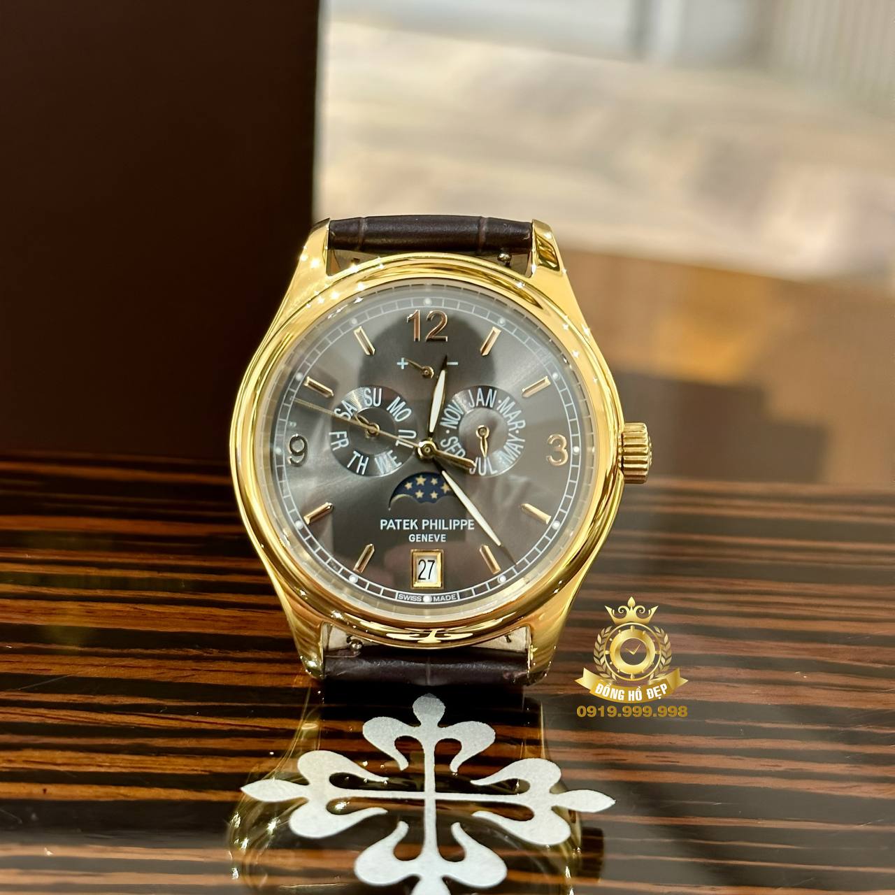 Đánh giá Patek Philippe Complications 5146J-010 Annual Calendar Moonphase Grey Dial Gold-Yellow Case.