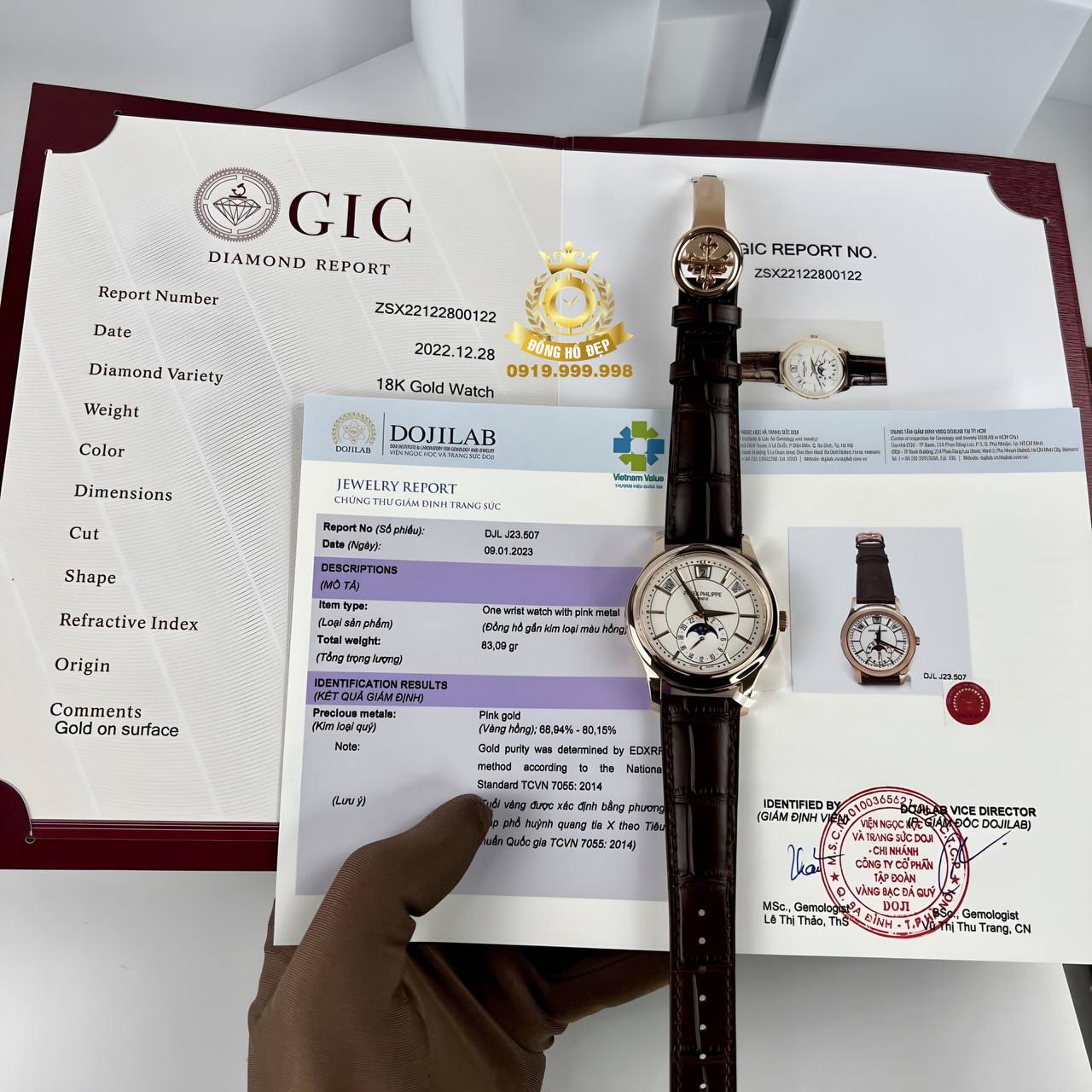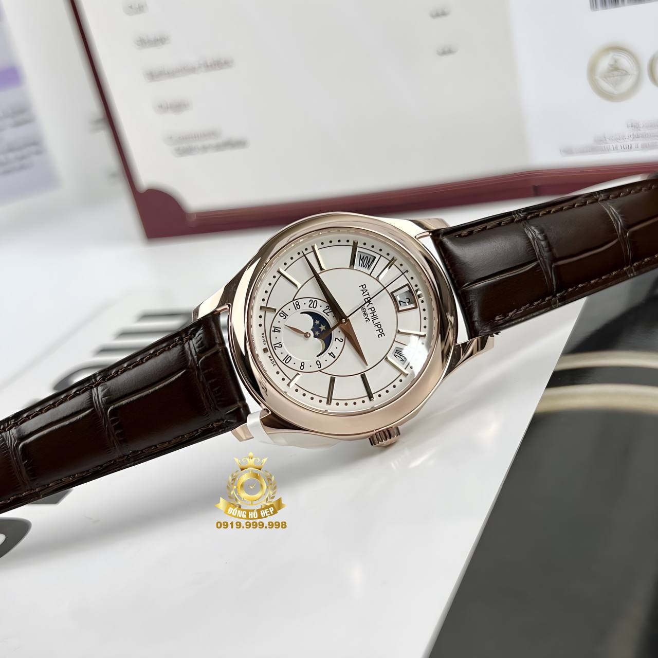 Đánh giá Patek Philippe Complications 5205R-001 Annual Calendar Moonphase White Dial Bọc Vàng.