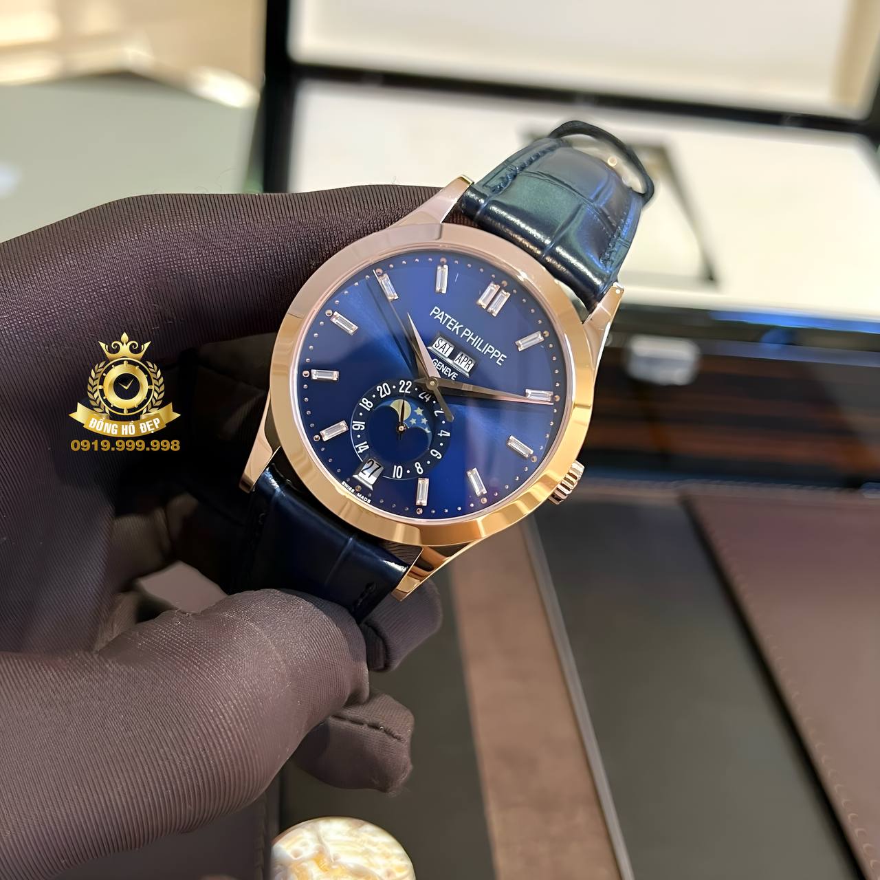 Đồng hồ luôn là món phụ kiện không thể thiếu để của mỗi người đàn ông. Chiếc đồng hồ bởi vậy không chỉ đơn thuần là người bạn đồng hành trên cổ tay, mà hơn hết, đây được coi như một thước đo của phong cách, của chuẩn mực dành cho những quý ông. Như một biểu tượng của sự cao quý. Patek Philippe đã mang đến cho công chúng trên toàn thế giới những cỗ máy thời gian không chỉ đẹp. Mà còn vô cùng đẳng cấp và khác biệt. Điển hình trong đó chúng ta có thể nhắc tới Patek Philippe Complications 5396R-015 Annual Calendar Moonphase Blue Dial New.