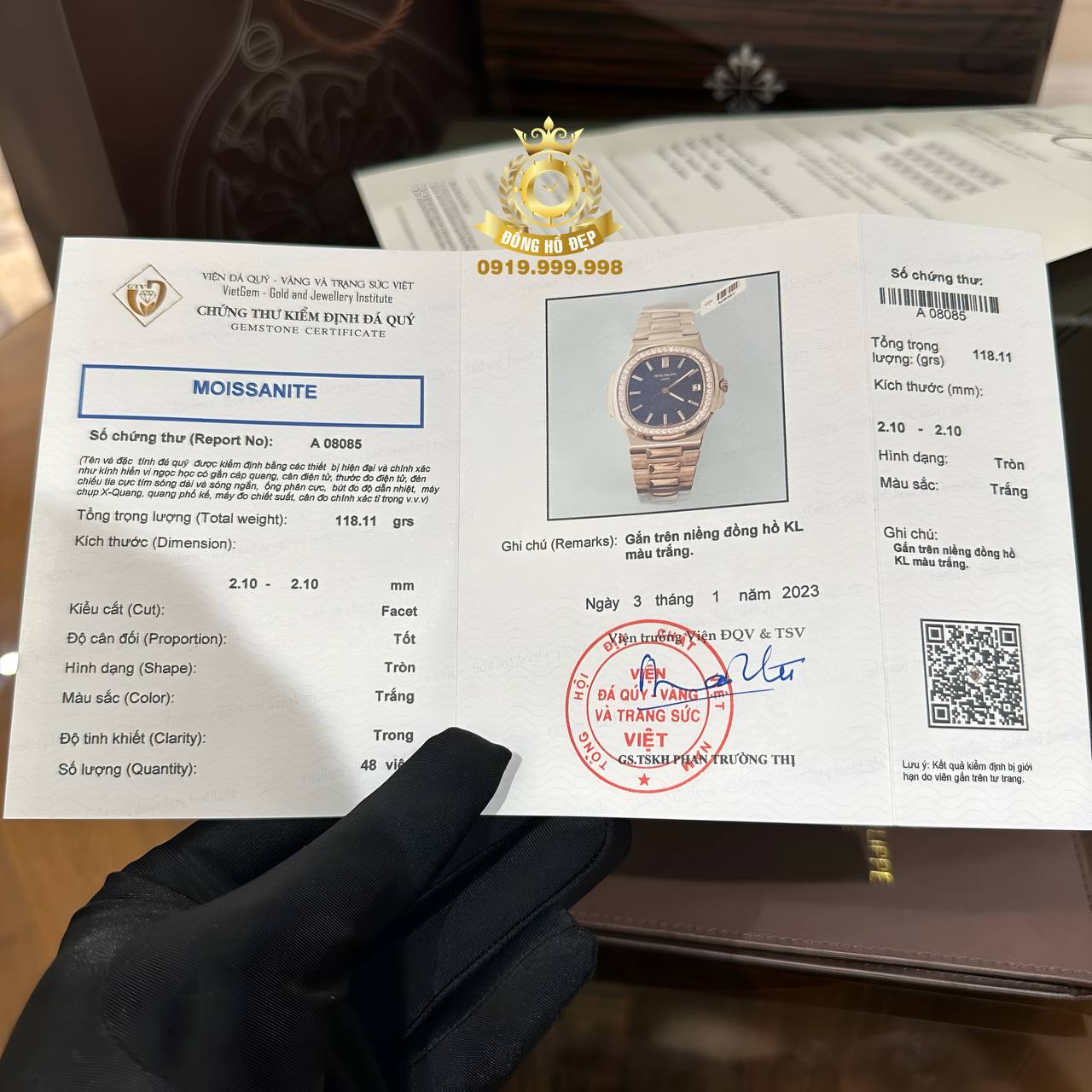 | Chất liệu vỏ | Platinum – Kim cương Moissanite |
