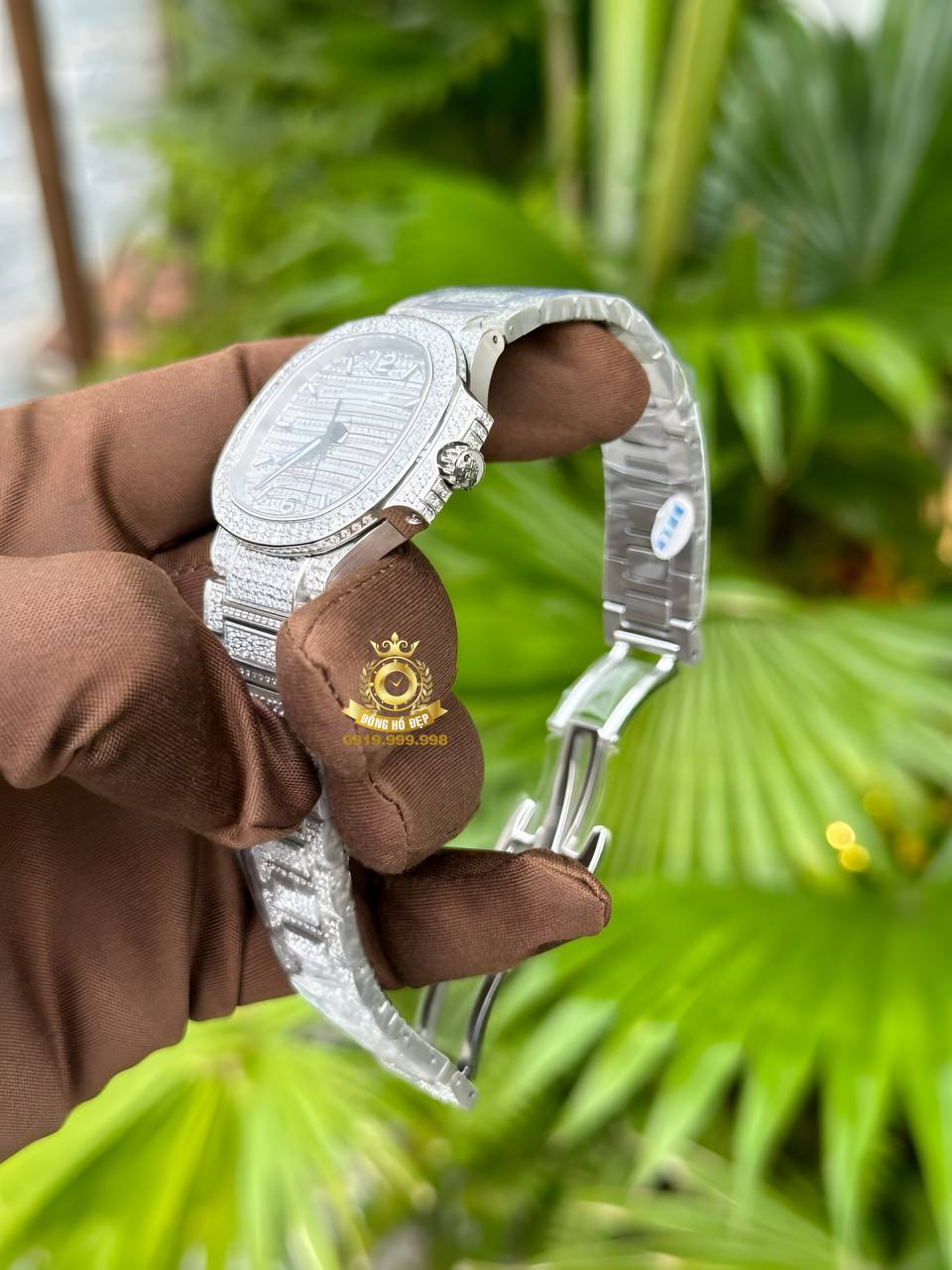 Ngay từ cái nhìn đầu tiên, chúng ta có thể thấy rõ giá trị và sự quý giá của chiếc đồng hồ này. Vỏ đồng hồ được khảm nạm hoàn toàn bằng đá Swarovski lấp lánh, thu hút mọi ánh nhìn.