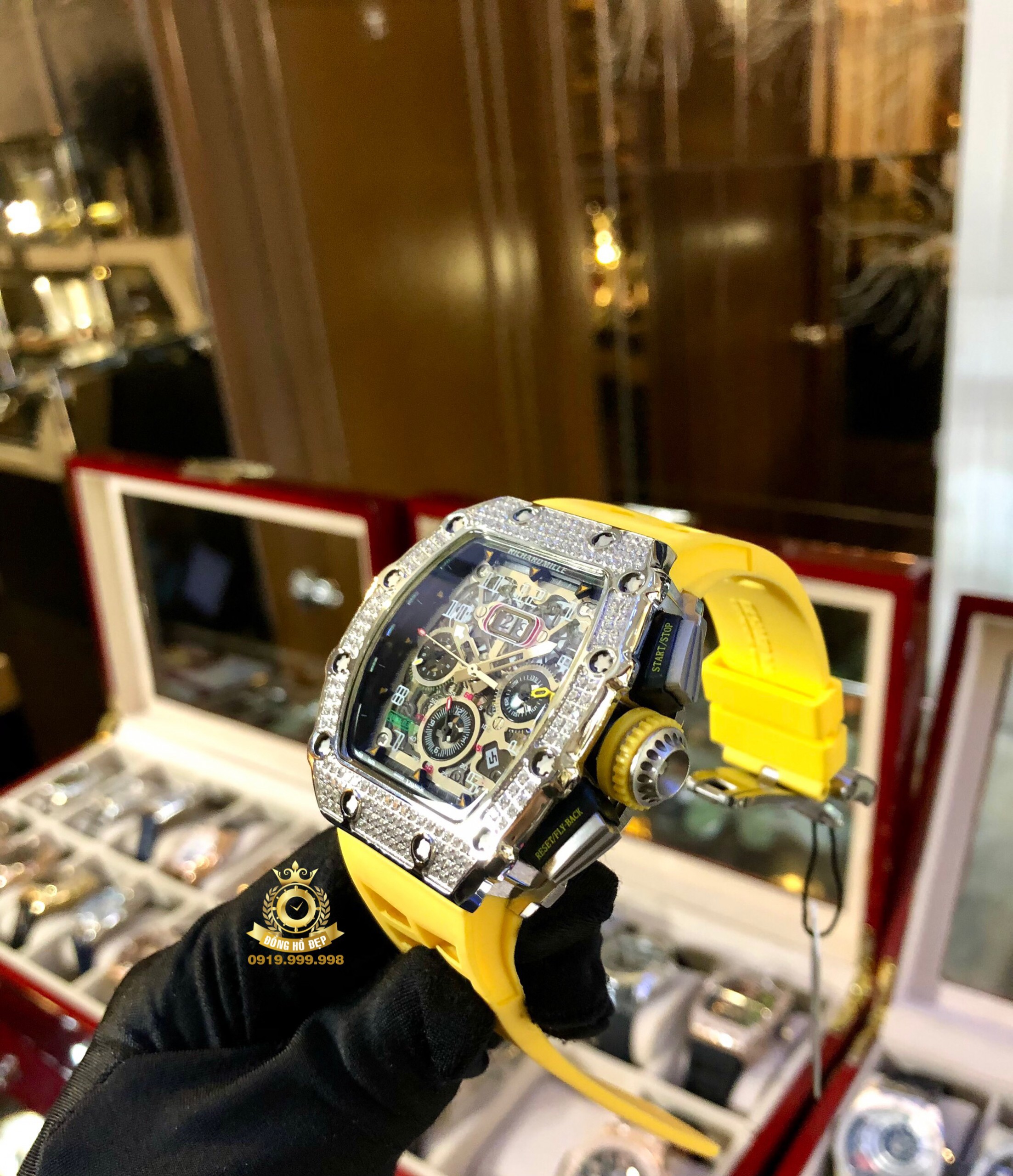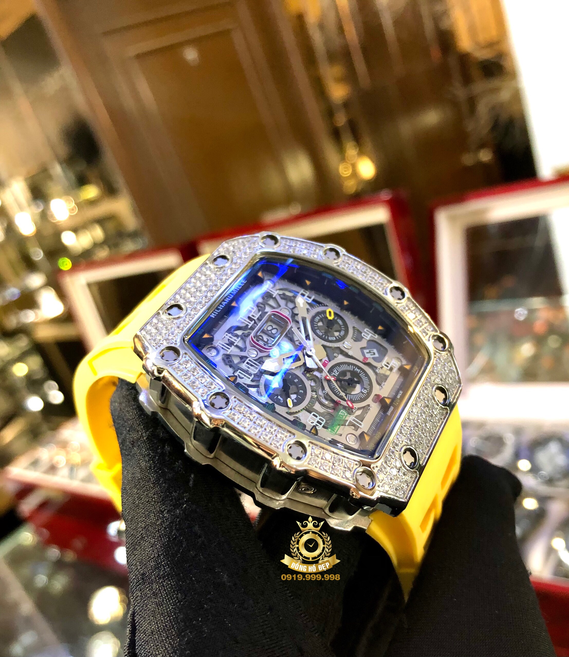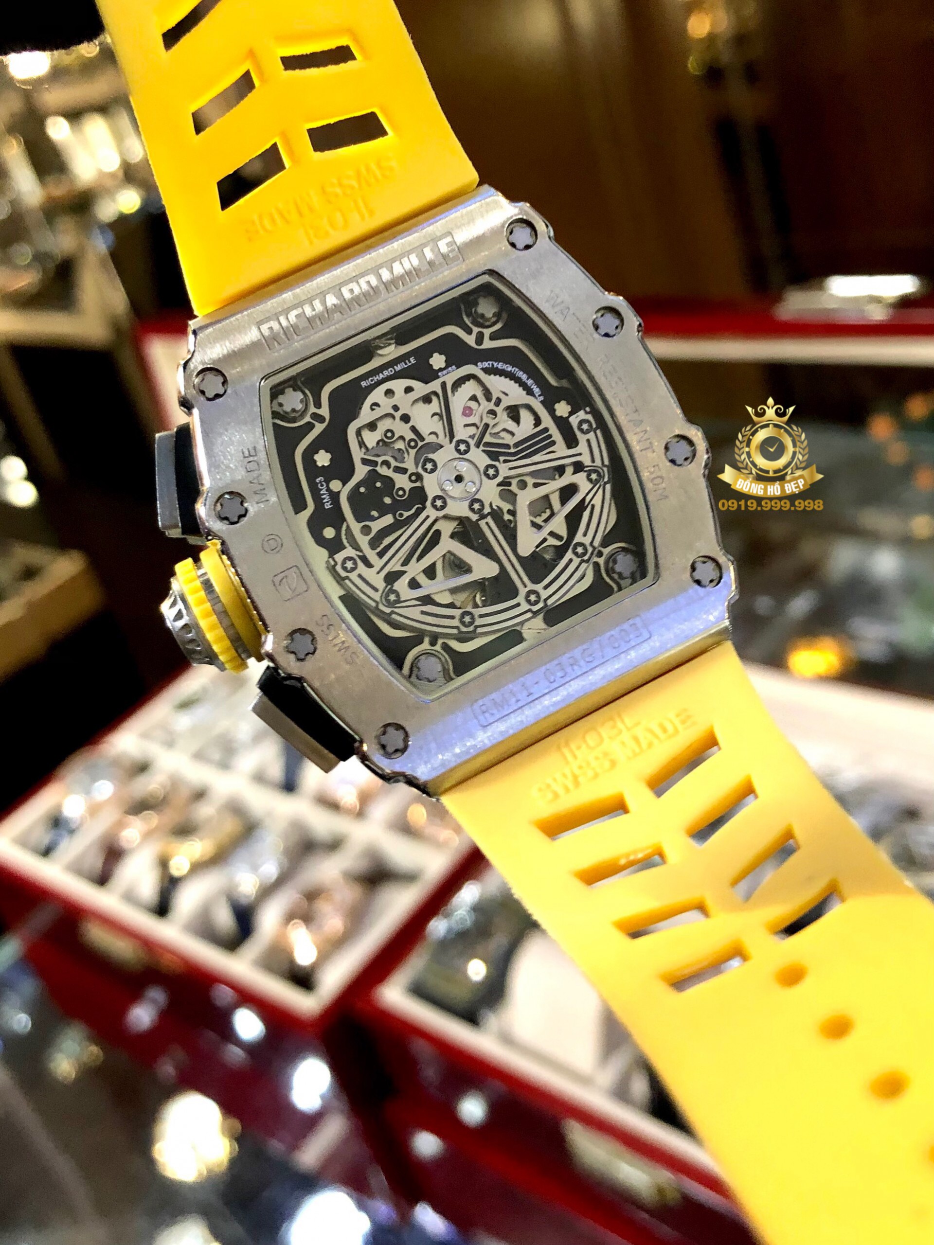 Đánh giá Richard Mille RM 11-03 Titanium Diamond Yellow Rubber Strap.