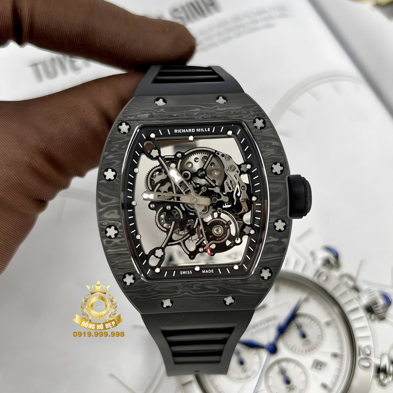 Đánh giá Richard Mille RM055 All Black Full Carbon BBR Factory.