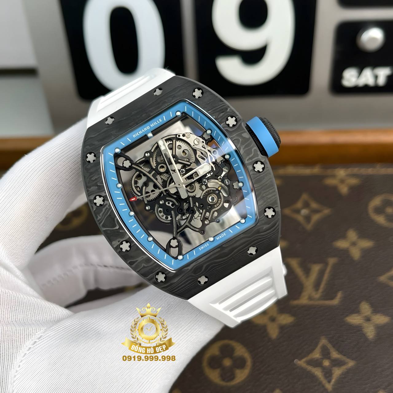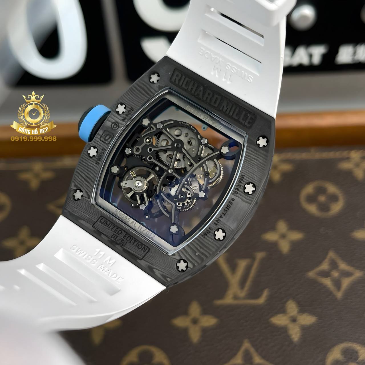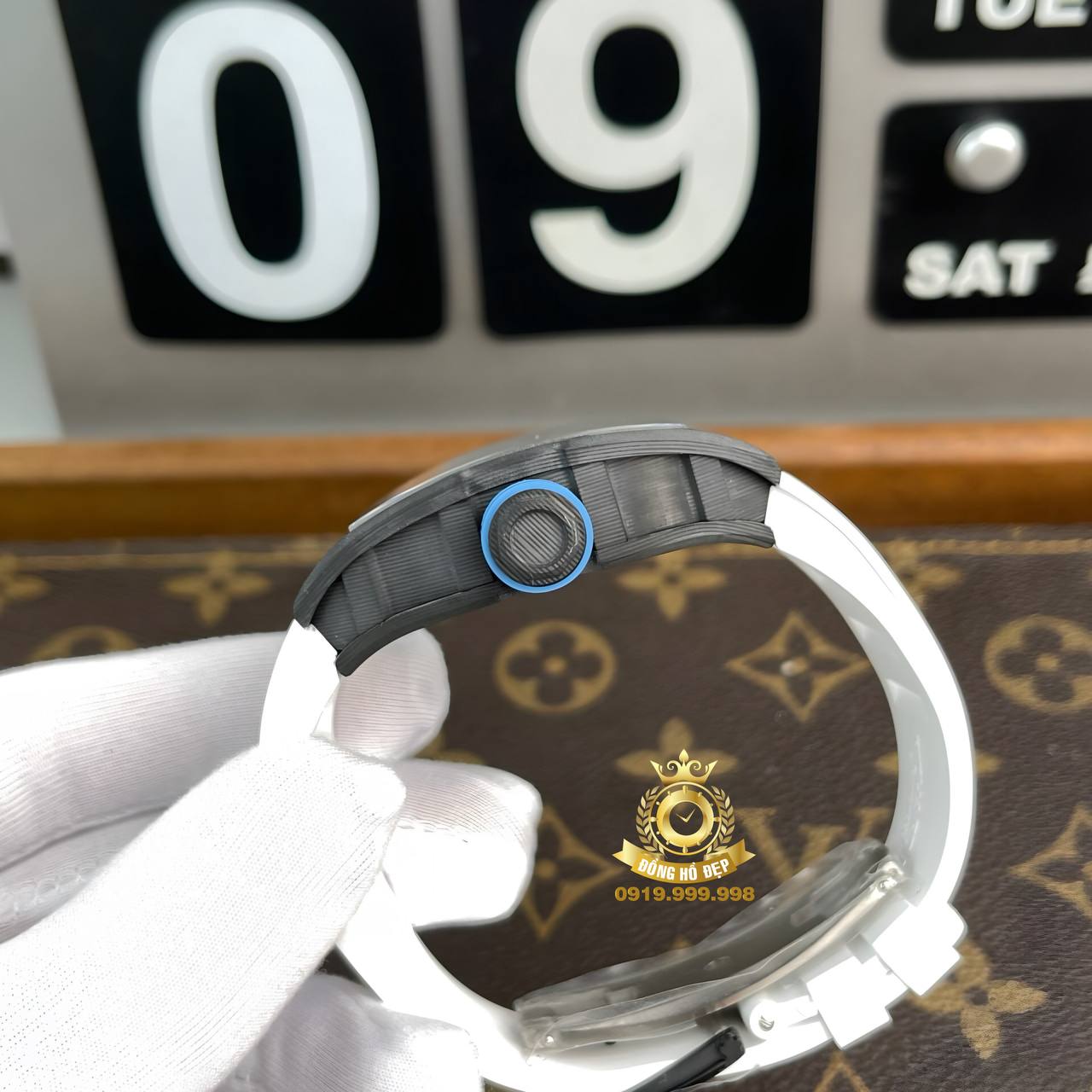 Đánh giá Richard Mille RM055 Blue Dial White Rubber Full Carbon.