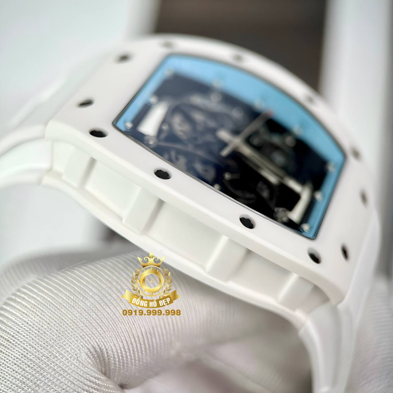 Đánh giá Richard Mille RM055 Bubba Watson Ceramic All White Blue Dial.