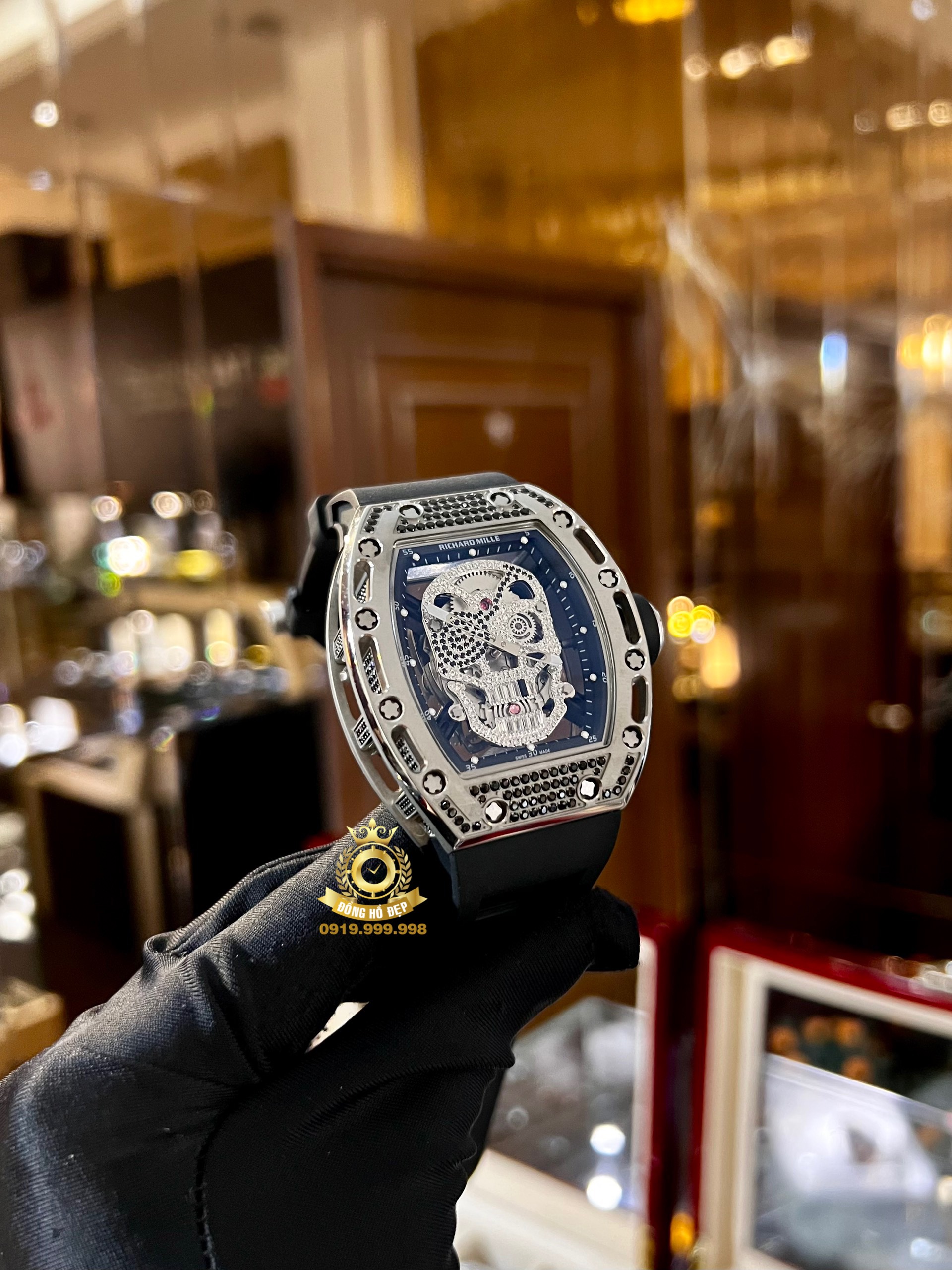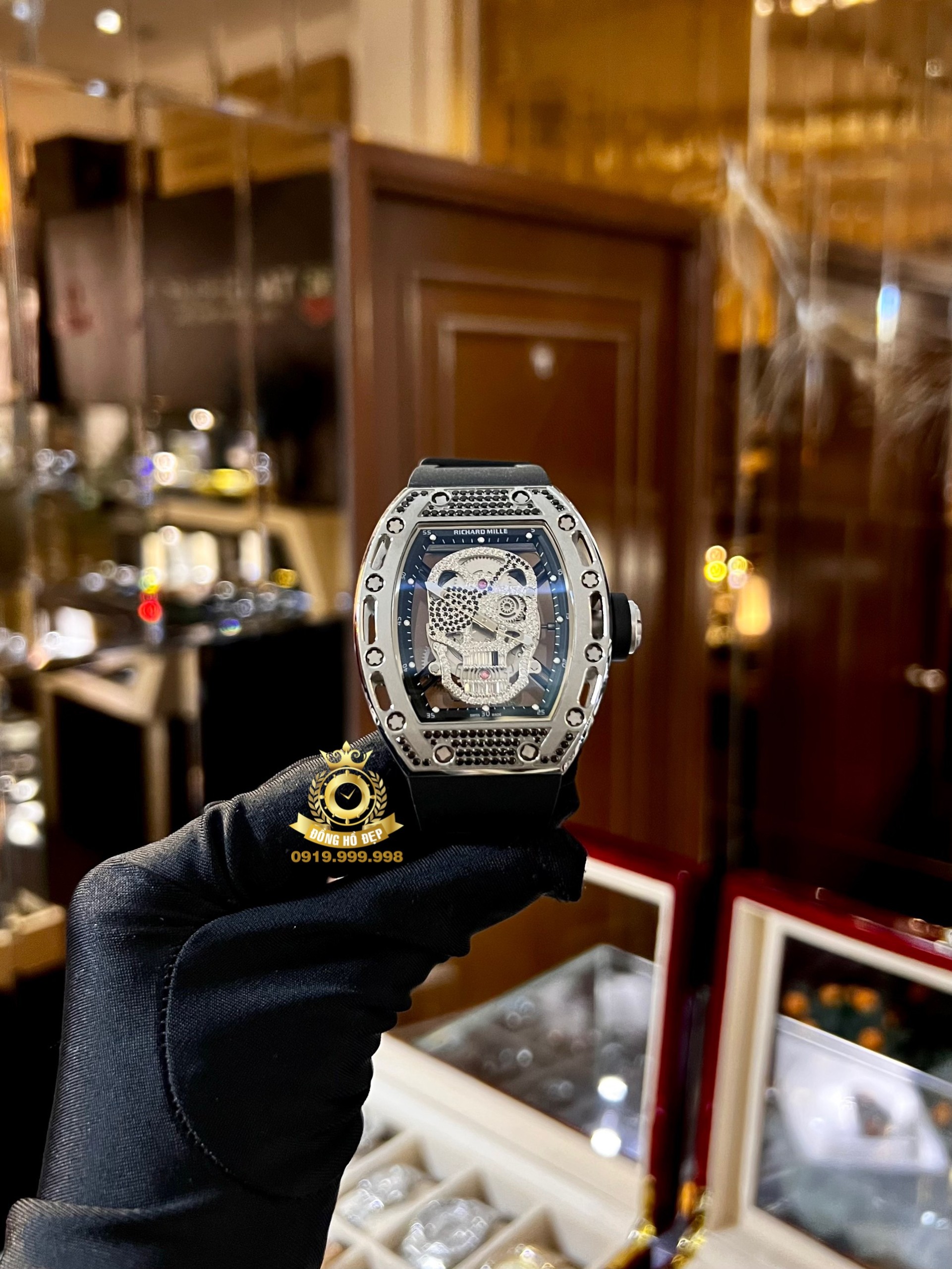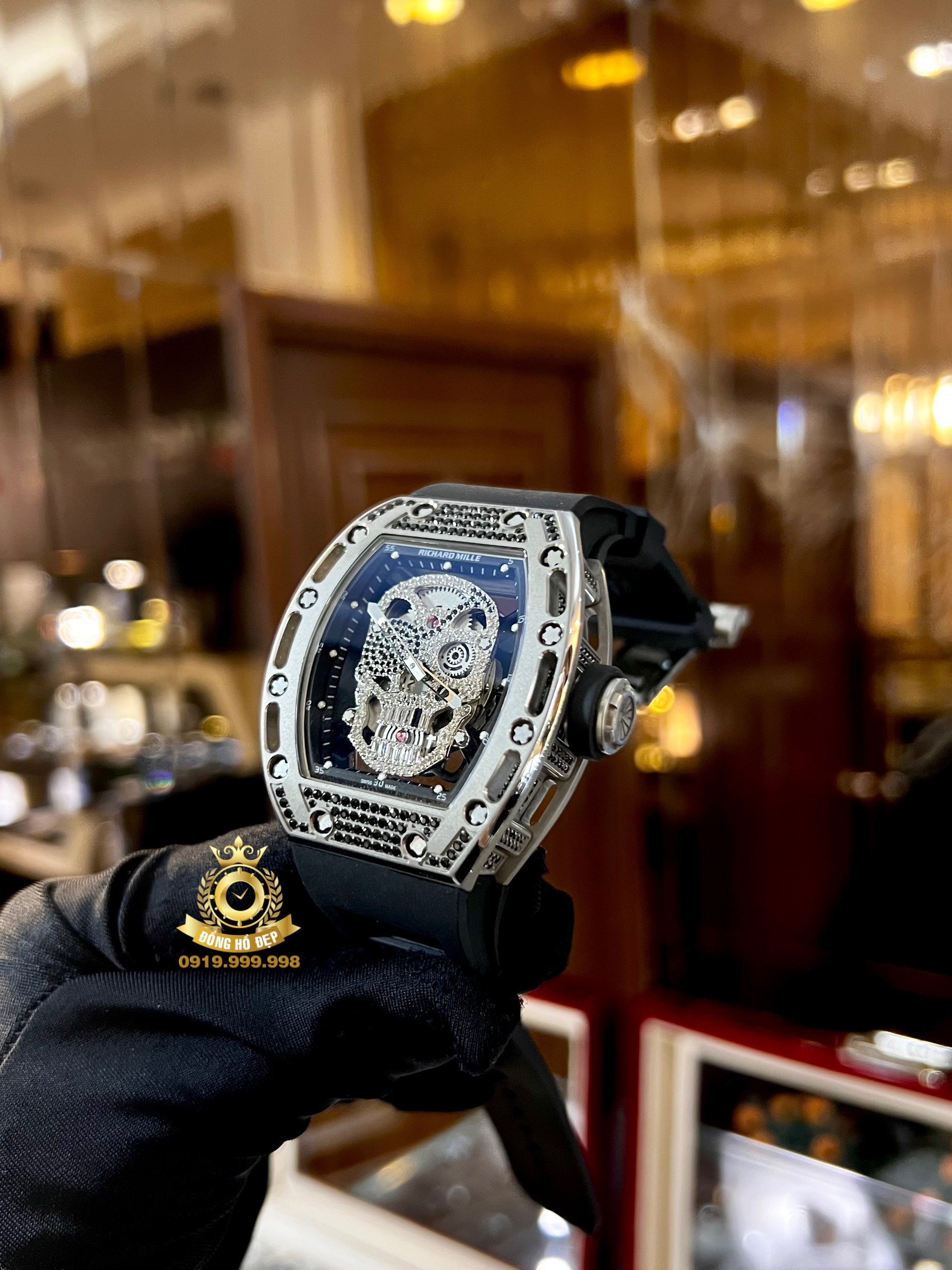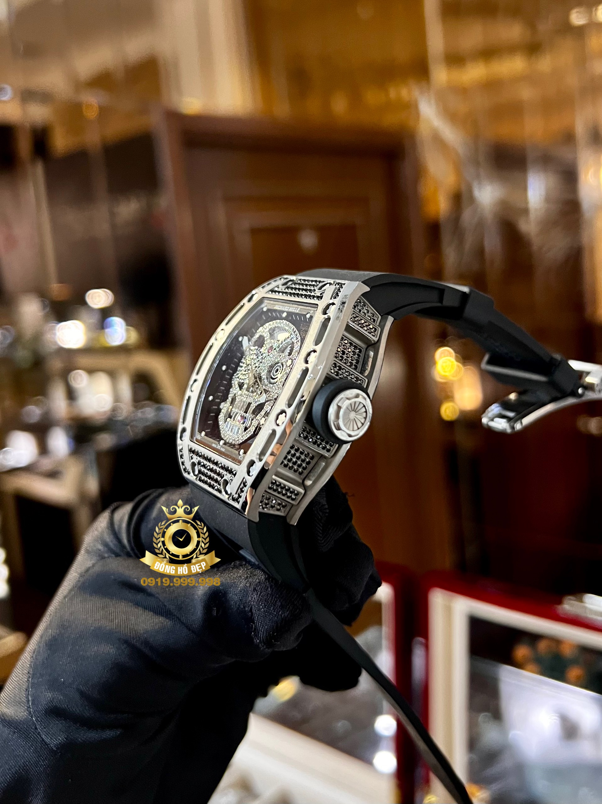 Đánh giá Richard Mille Skull RM052 Titanium Diamond Case Black Rubber