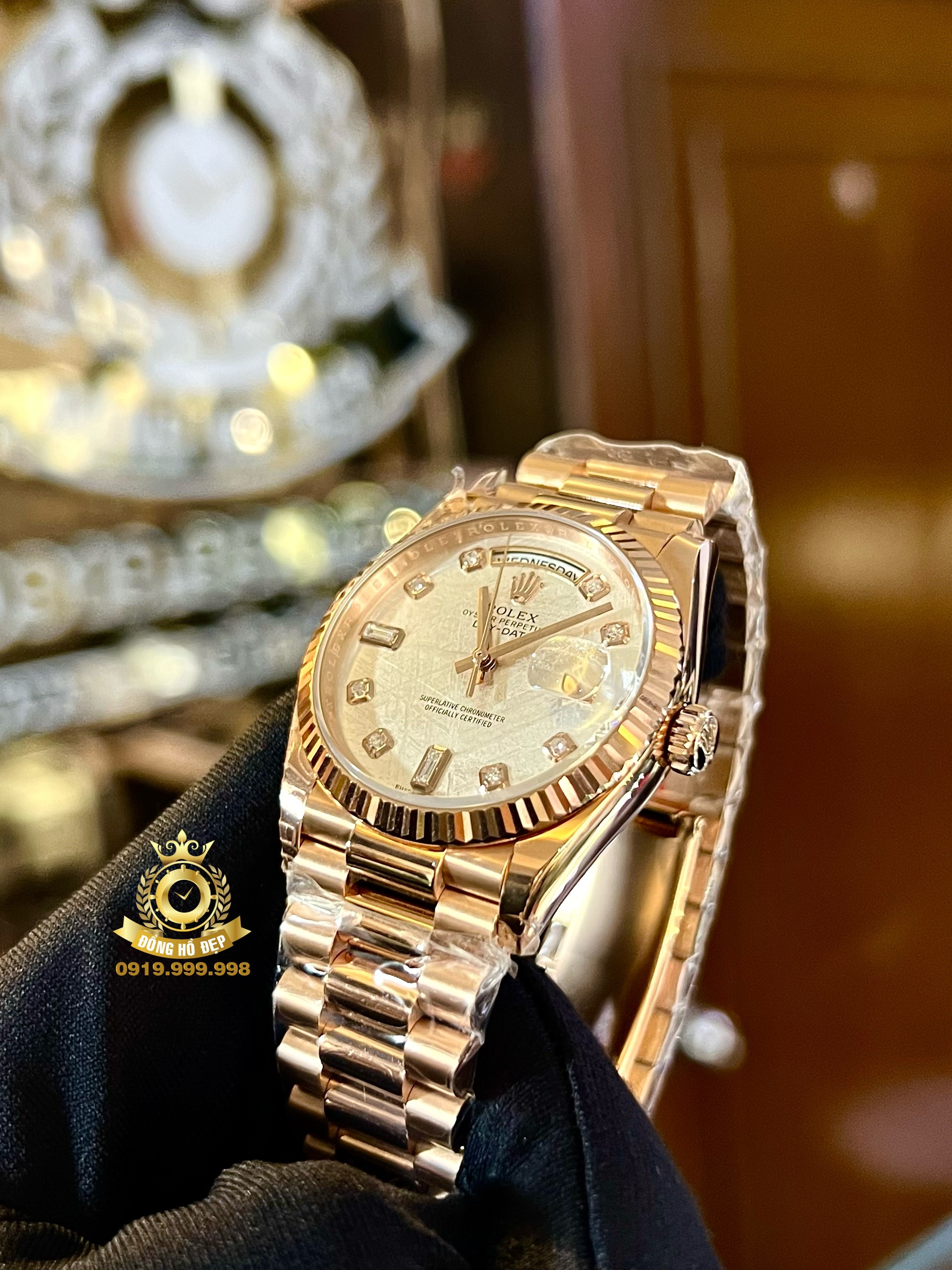 Đánh giá Rolex 118348 Day-Date Mặt thiên thạch Diamond RoseGold