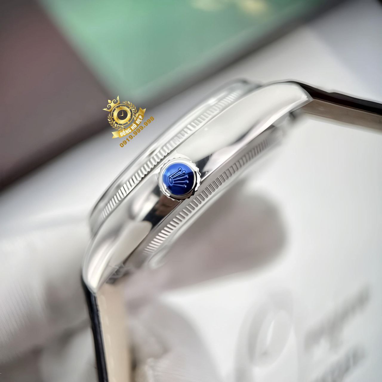 Hình dạng tròn, đường kính 39 mm cổ điển, vỏ độc quyền đã ghi lại những dấu ấn của truyền thống, trong khi các vấu tinh tế, kết cấu đánh bóng và đai kính kép – một dạng hình vòm và một loại được chia rãnh tinh xảo – càng tạo nên sự khác biệt. Một tính năng biểu tượng Rolex, rãnh này cũng có mặt trên nút vặn ở sau vỏ máy, được hình thành như trong thời đại quá khứ.