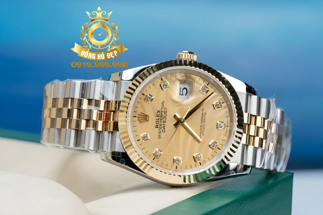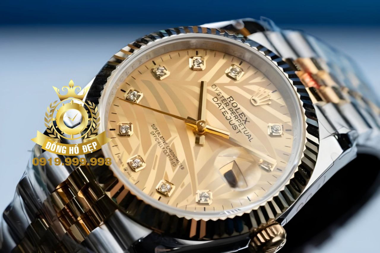 Đánh giá Rolex Datejust 126234 Palm Champagne Bọc Vàng 18K Gold Demi.