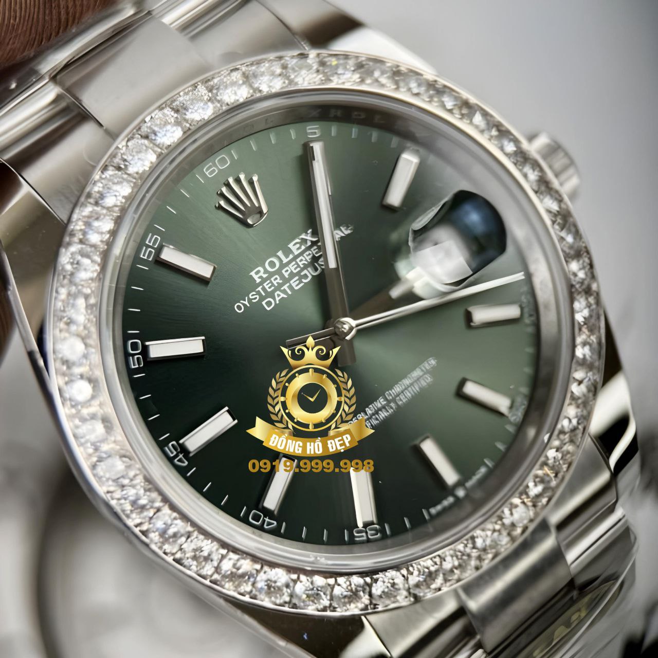 Đánh giá Rolex DateJust 126334 Green Dial Line Moissanite 2.5Ly Steel.