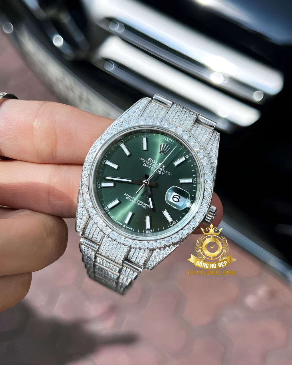 Rolex DateJust 126334 Xanh Lá Chế Tác Steel Moissanite Full.