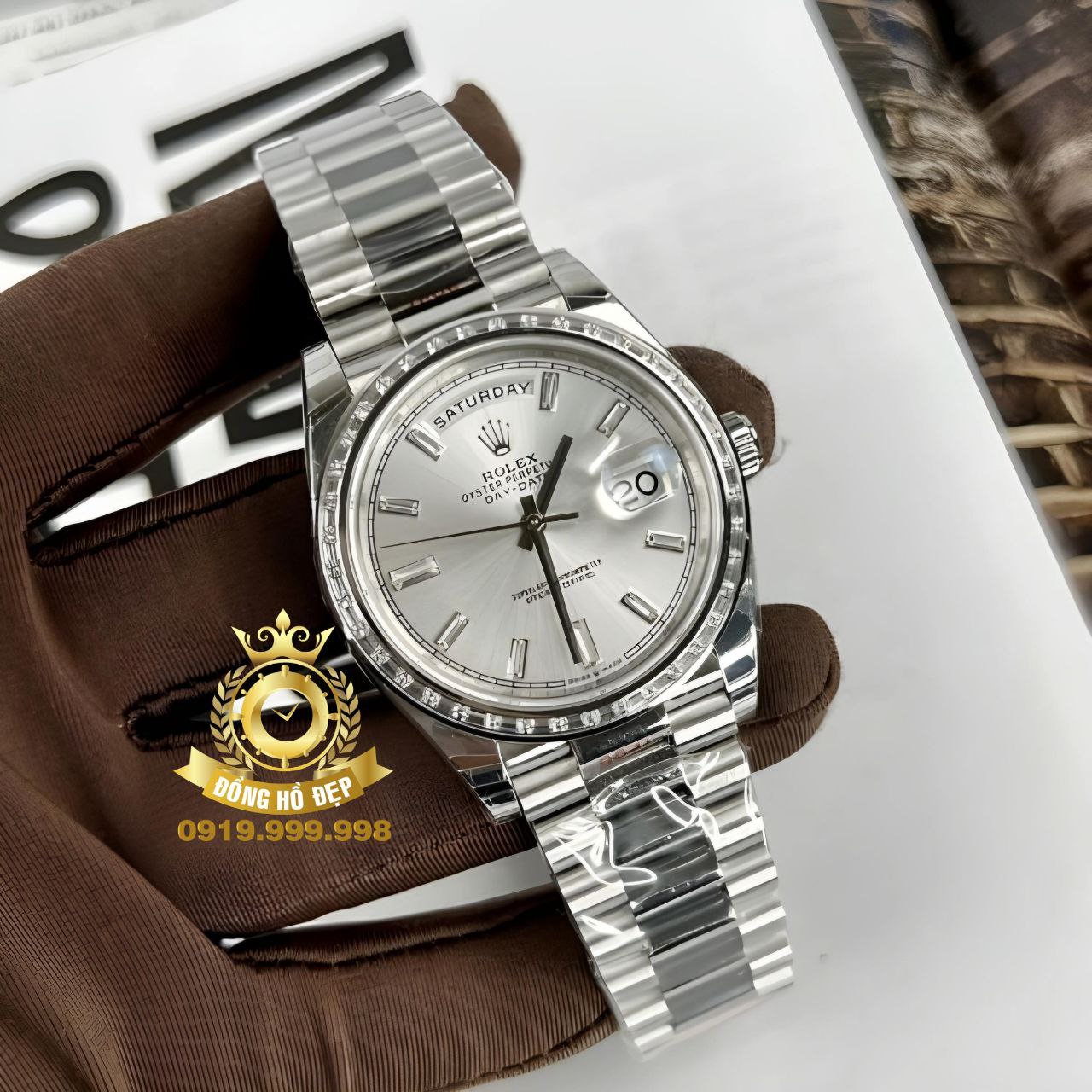 Đánh giá Rolex Day-Date 118235 Silver Line Diamonds Steel.