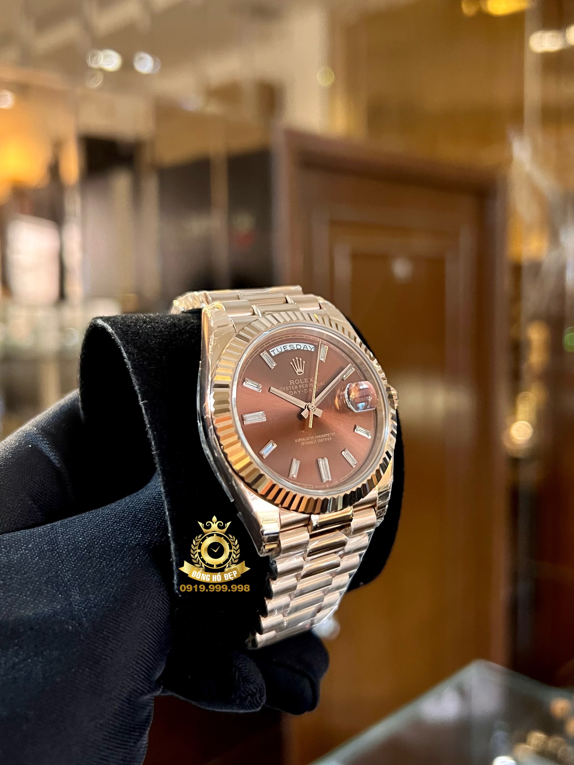 Rolex Day-Date 40 228235 Mặt Số Chocolate Đá.