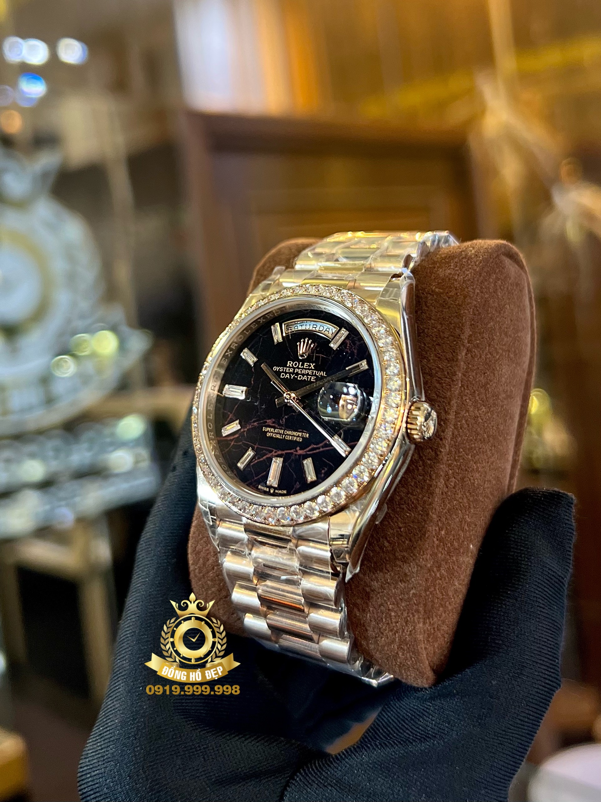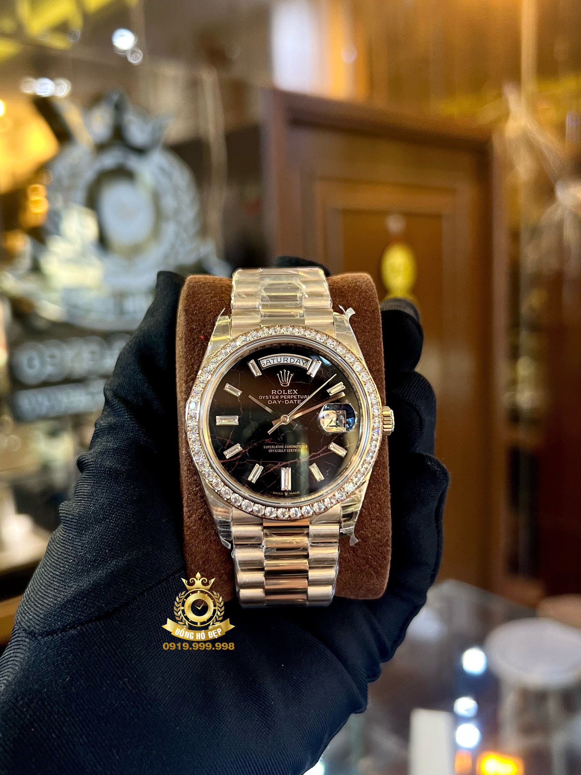 Đánh giá Rolex Day-Date 40 Rose Gold 228235 Eisenkiesel Baguette Dial Unworn Diamond Bezel