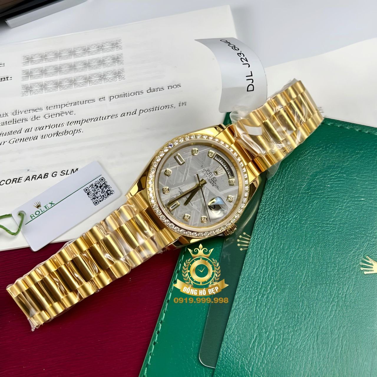 Rolex Day-Date Bọc Vàng 18K Moissanite Mặt Thiên Thạch.