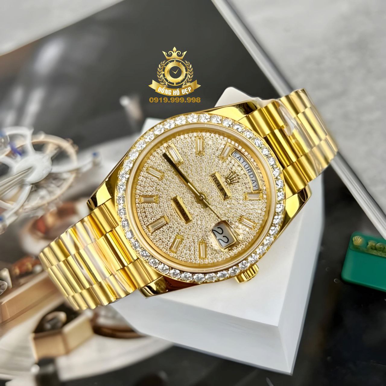 Đánh giá Rolex Day-Date Bọc Vàng Full Moissanite.