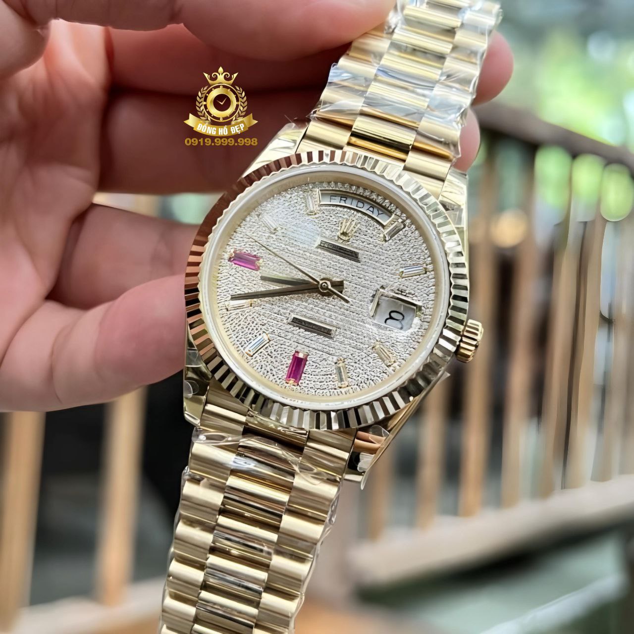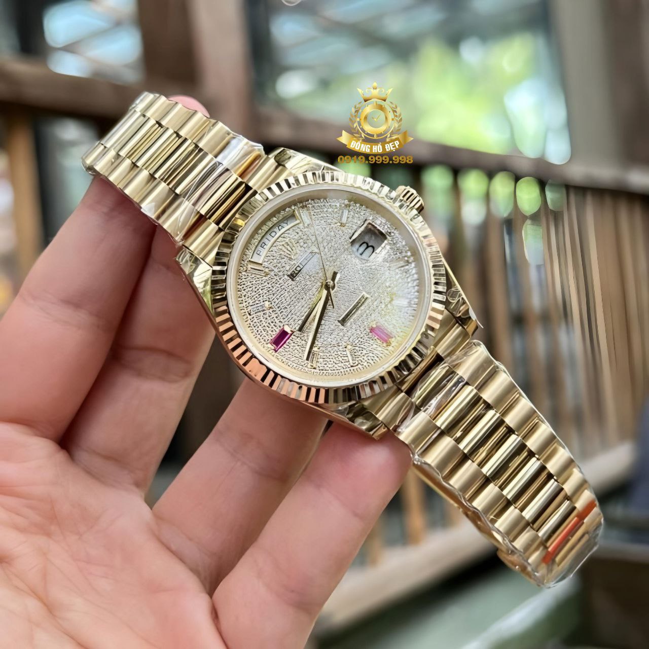 Đánh giá Rolex Day-Date Full Swarovski Gold Steel.