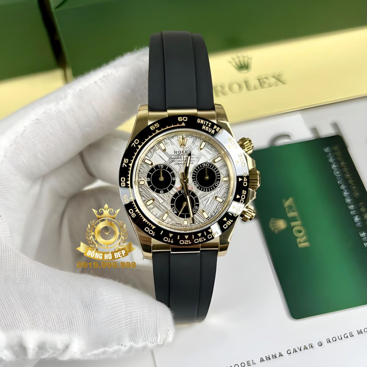 Đánh giá Rolex Daytona Chế Tác Mặt Số Thiên Thạch Gold Black Rubber.