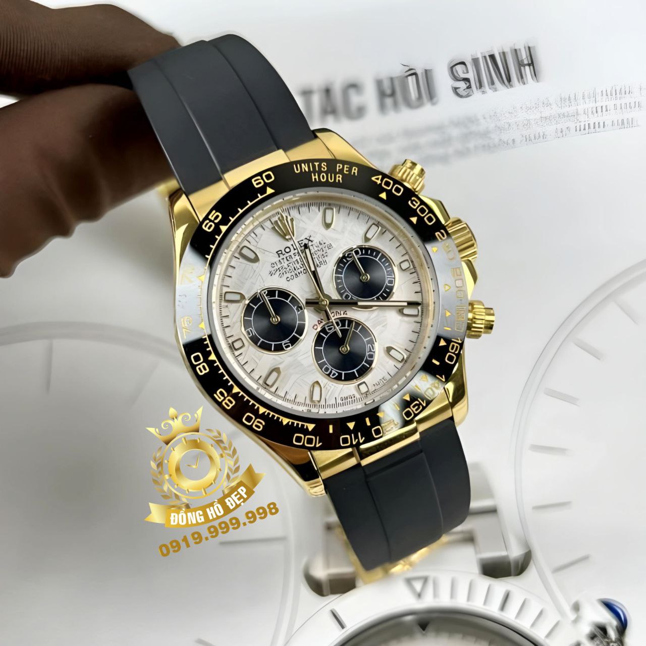 Đánh giá Rolex Daytona Chronograph Thiên Thạch Gold Black Rubber.