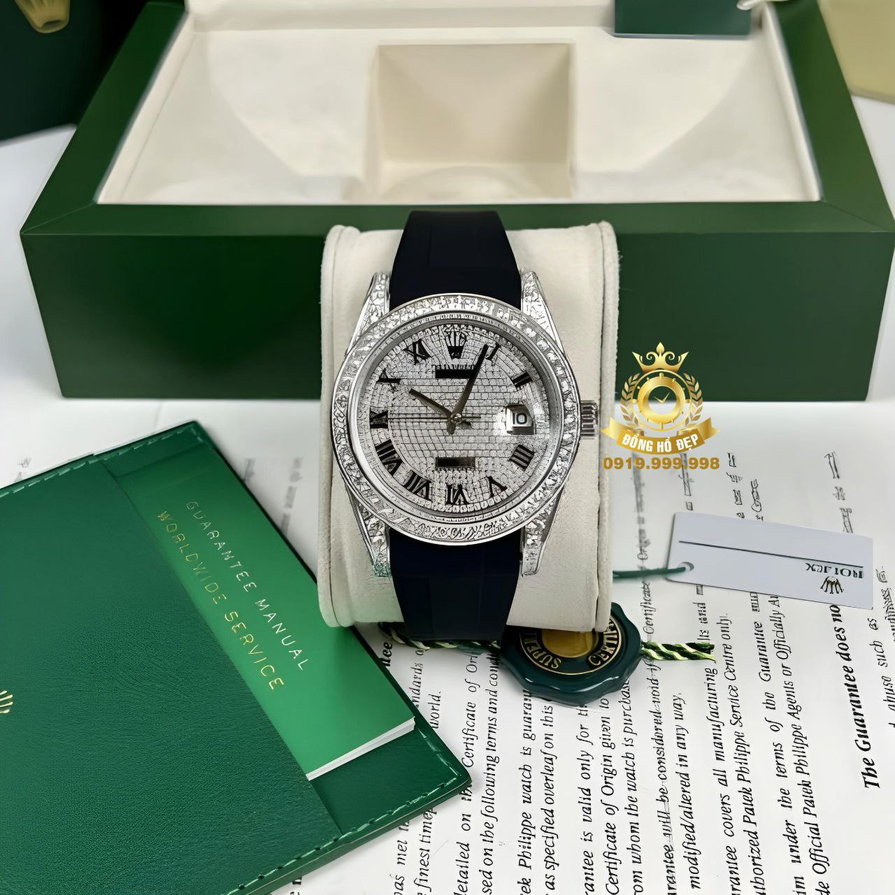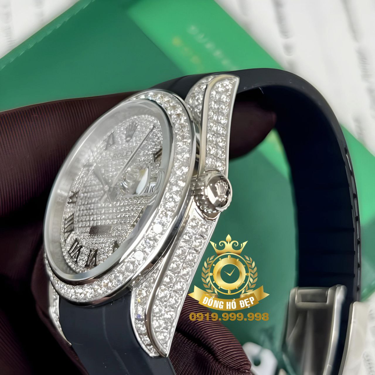 Đánh giá Rolex Full Diamonds Silver Black Rubber.