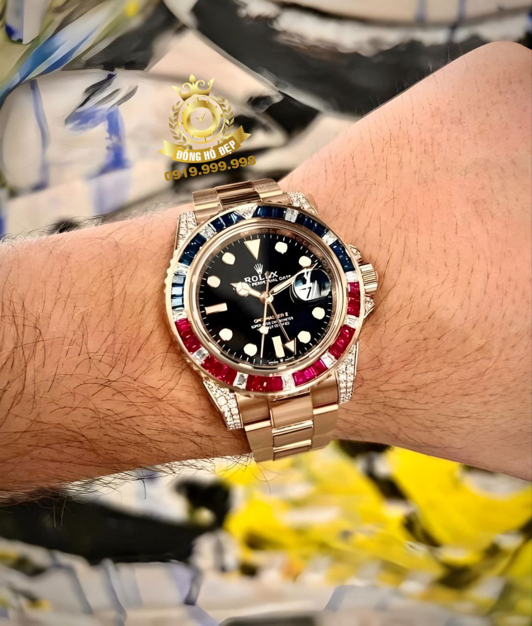 Đánh giá Rolex GMT-Master II 126755 SARU Bọc Vàng Moissanite Sapphire Ruby HongKong.