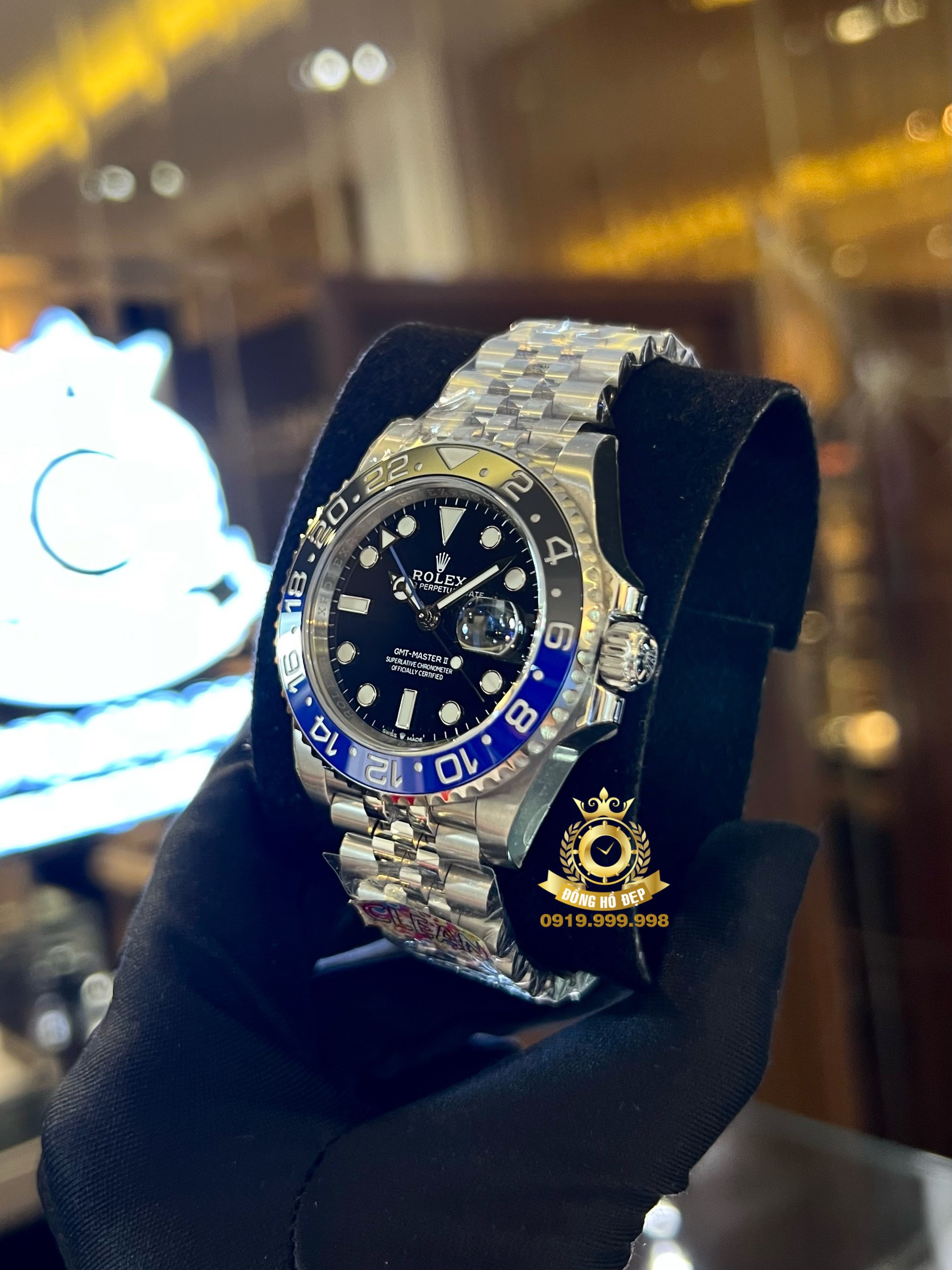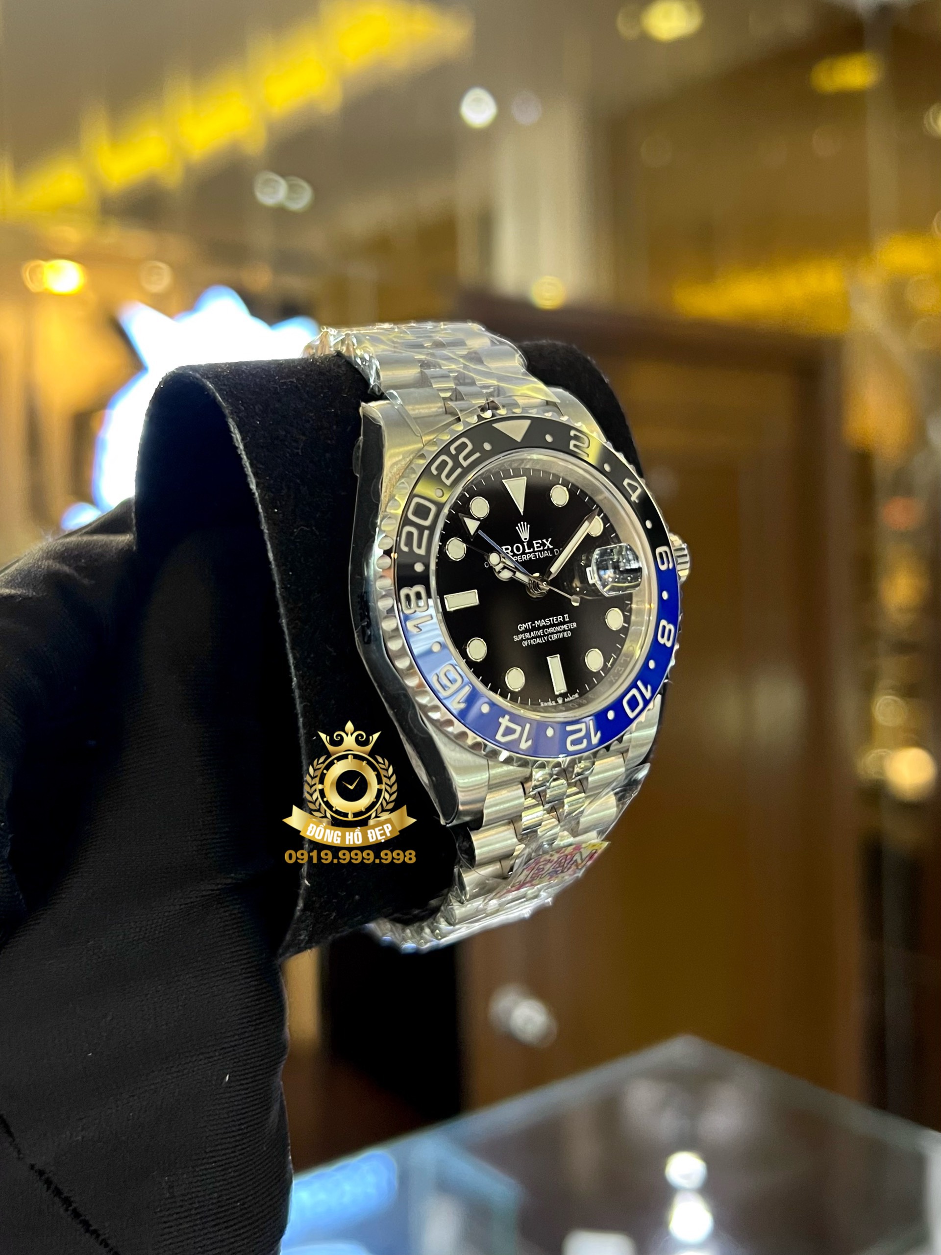 Rolex đã cập nhật chiếc đồng hồ du lịch nổi tiếng của mình, GMT-Master II, bằng thép với vòng bezel “Batman” màu xanh lam và đen. Chúng tôi đã thử nghiệm một trong những sản phẩm đầu tiên có sẵn với vòng đeo tay Jubilee . Sự kết hợp màu xanh-đen trên gờ của chiếc Rolex GMT-Master II này khiến người hâm mộ gọi nó là “Người dơi”. Phiên bản hiện tại với vòng đeo tay Jubilee và bộ chuyển động mới đã được giới thiệu vào năm 2019. Phiên bản tiền nhiệm của nó với những màu tương tự này đã xuất hiện vào năm 2013 và là mẫu Rolex đầu tiên có gờ bằng gốm hai tông màu. Sự kết hợp màu đặc biệt này không tồn tại trước đây. Chiếc GMT-Master II đầu tiên năm 1954 có thang đo 24 giờ xanh lam và đỏ và sau đó được gọi là “Pepsi” vì sự kết hợp màu sắc này. Những màu này lần đầu tiên được chọn để phân biệt rõ ràng hơn giữa giờ ngày và đêm trong múi giờ thứ hai. Các thông số kỹ thuật này và các thông số kỹ thuật khác bắt nguồn từ Pan Am Airways, người đã yêu cầu mô hình. Các máy bay phản lực mới đã làm cho các chuyến bay xuyên lục địa trở nên ngắn hơn và phổ biến hơn, và với số lượng các chuyến bay ngày càng tăng đã làm nảy sinh mong muốn về đồng hồ có múi giờ kép. Sự phổ biến của GMT-Master đã tăng lên nhờ sự tinh tế của chiếc đồng hồ dành cho phi công và vòng bezel đầy màu sắc và có thể nhận ra ngay lập tức. Sau đó, có nhiều phiên bản được đặt trước hơn như mô hình “Coke” đen và đỏ.