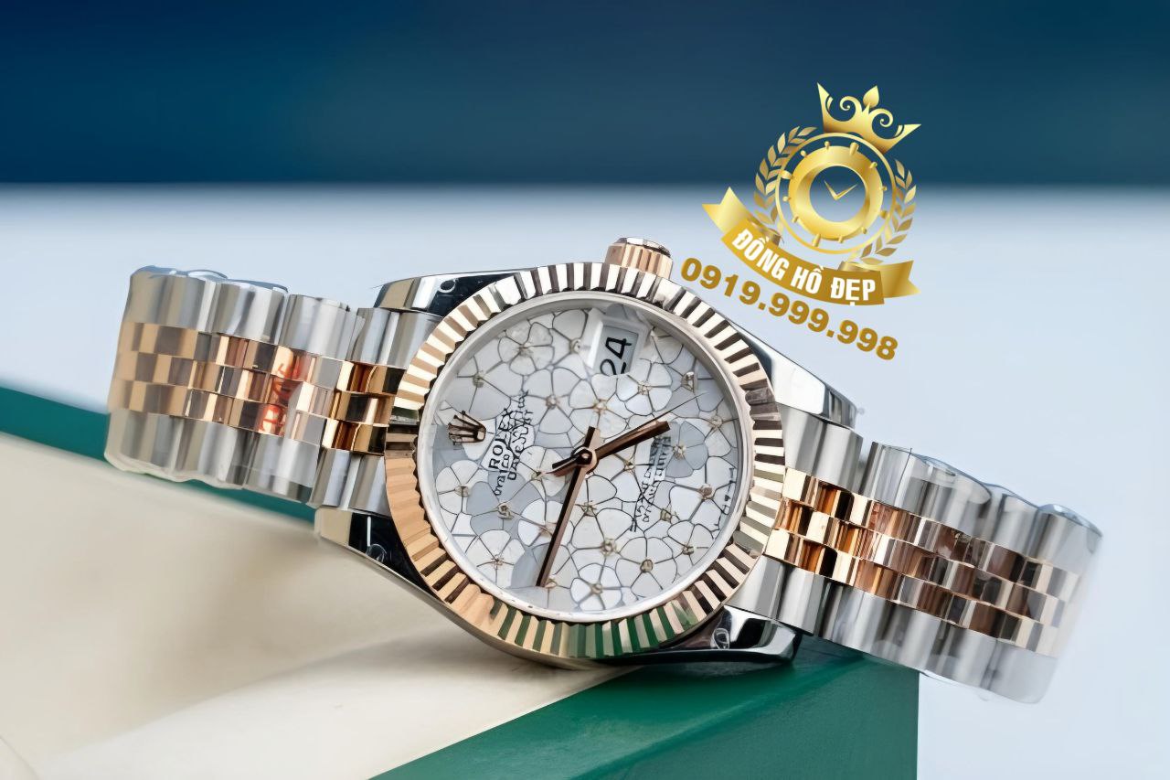 Đánh giá Rolex Lady Datejust 278273 Mặt Số Họa Tiết Hoa Trắng Demi Bọc Vàng 18K.
